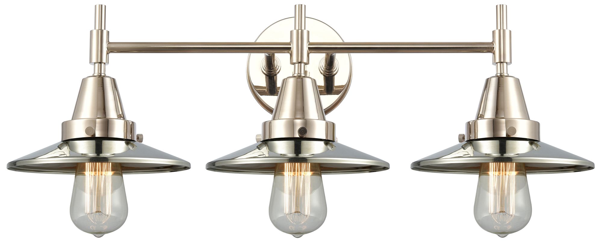 Caden Railroad 26"W 3 Light Polished Nickel Bath Vanity Light
