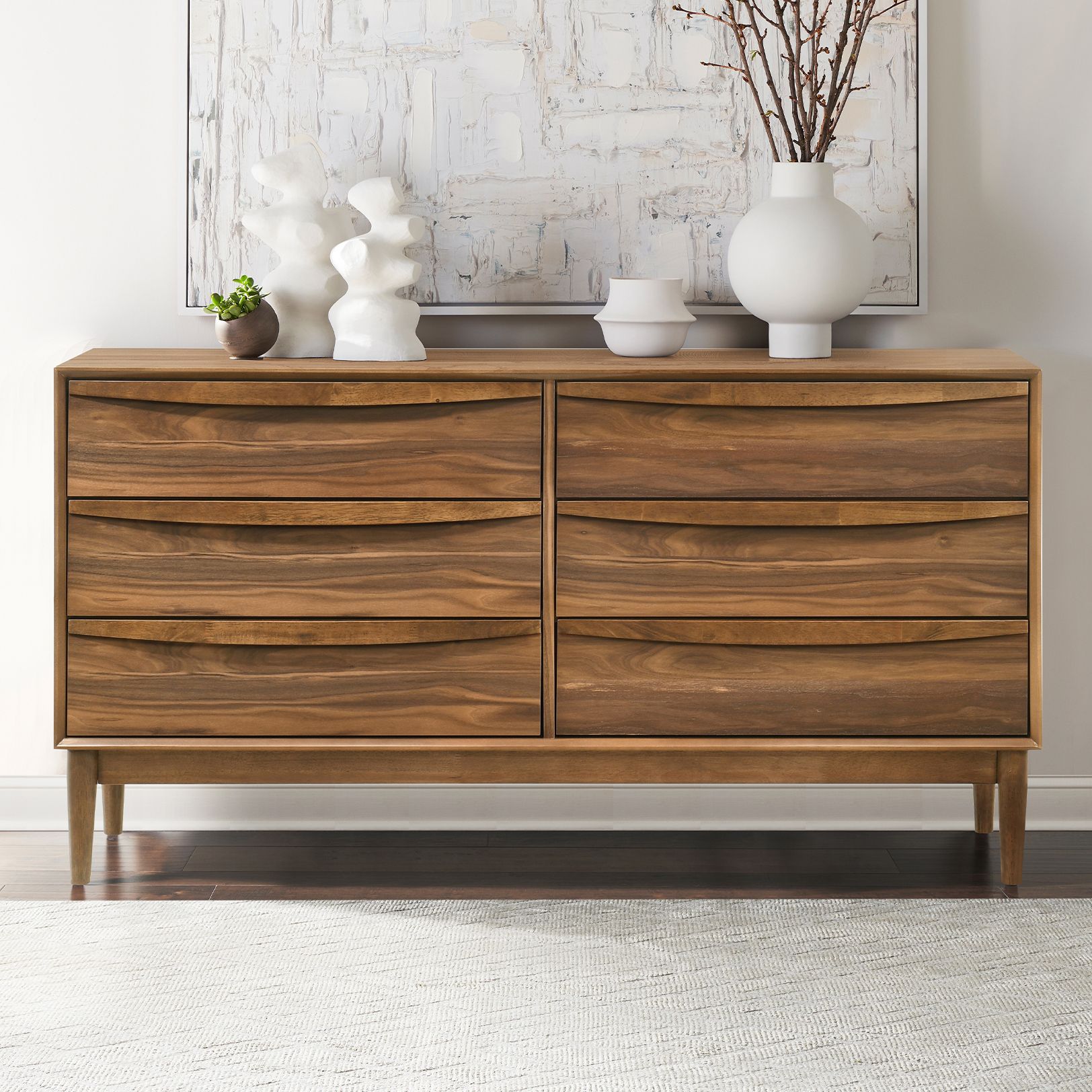 Artemio 6 Drawer Dresser in Wood and Walnut Finish