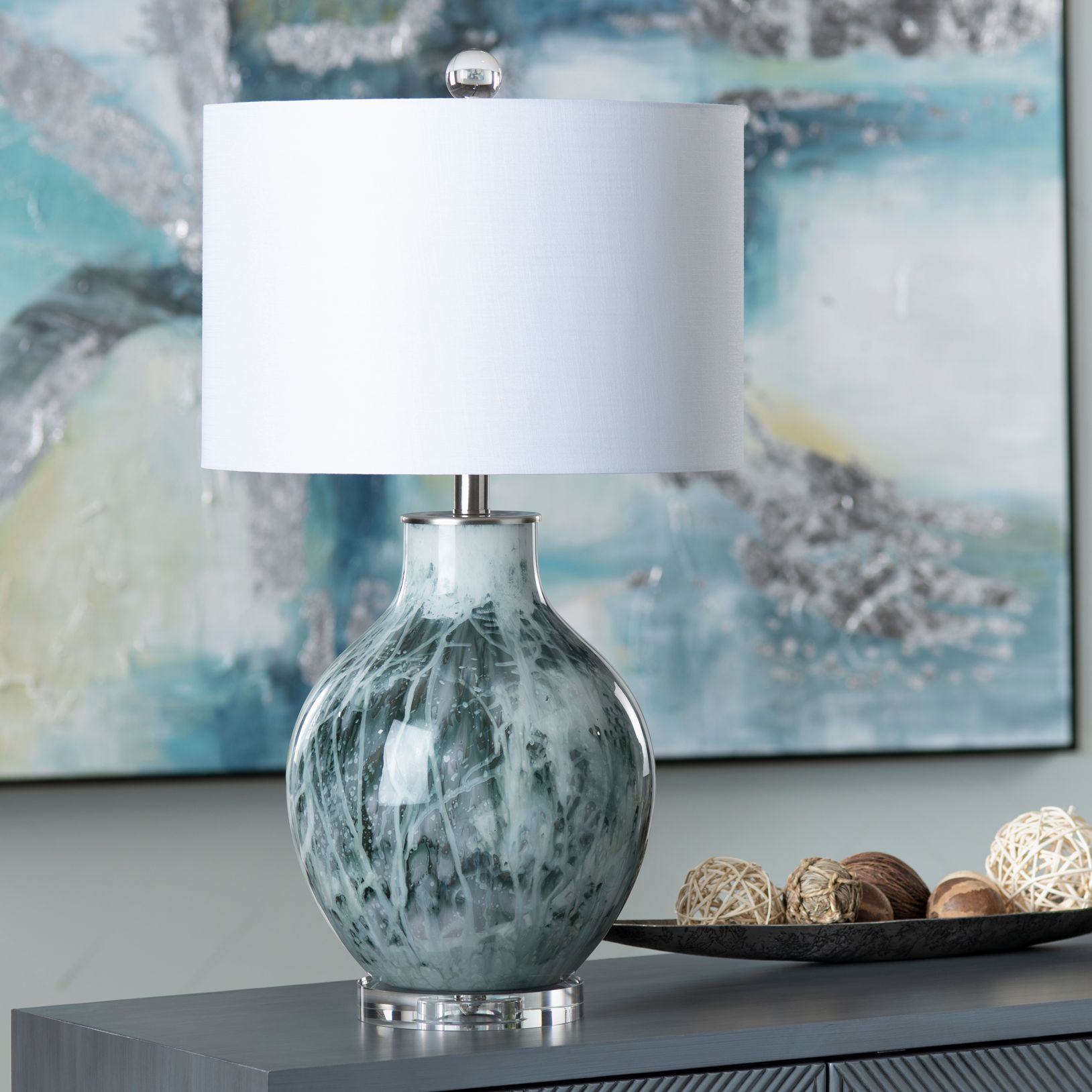 Crestview Collection Gwin 27" Azure Green and White Glass Table Lamp