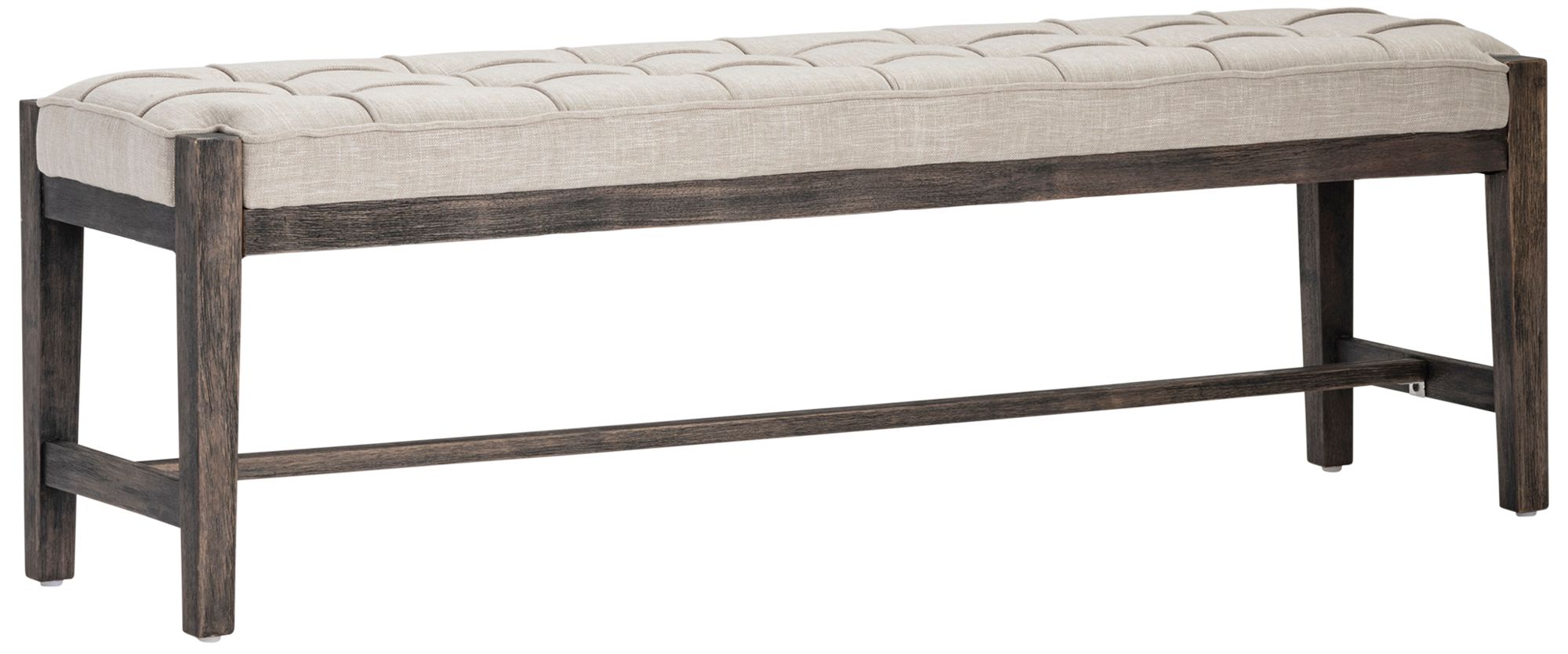 56 in. Beige Upholstered Accent Bench with Brown Solid Wood Frame