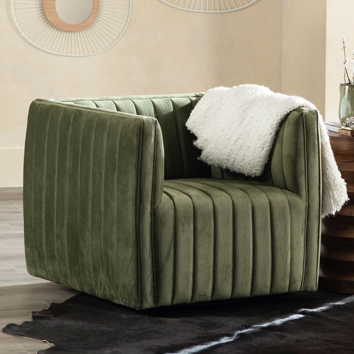 Green Upholstered Accent Arm Chair with Black Iron Frame