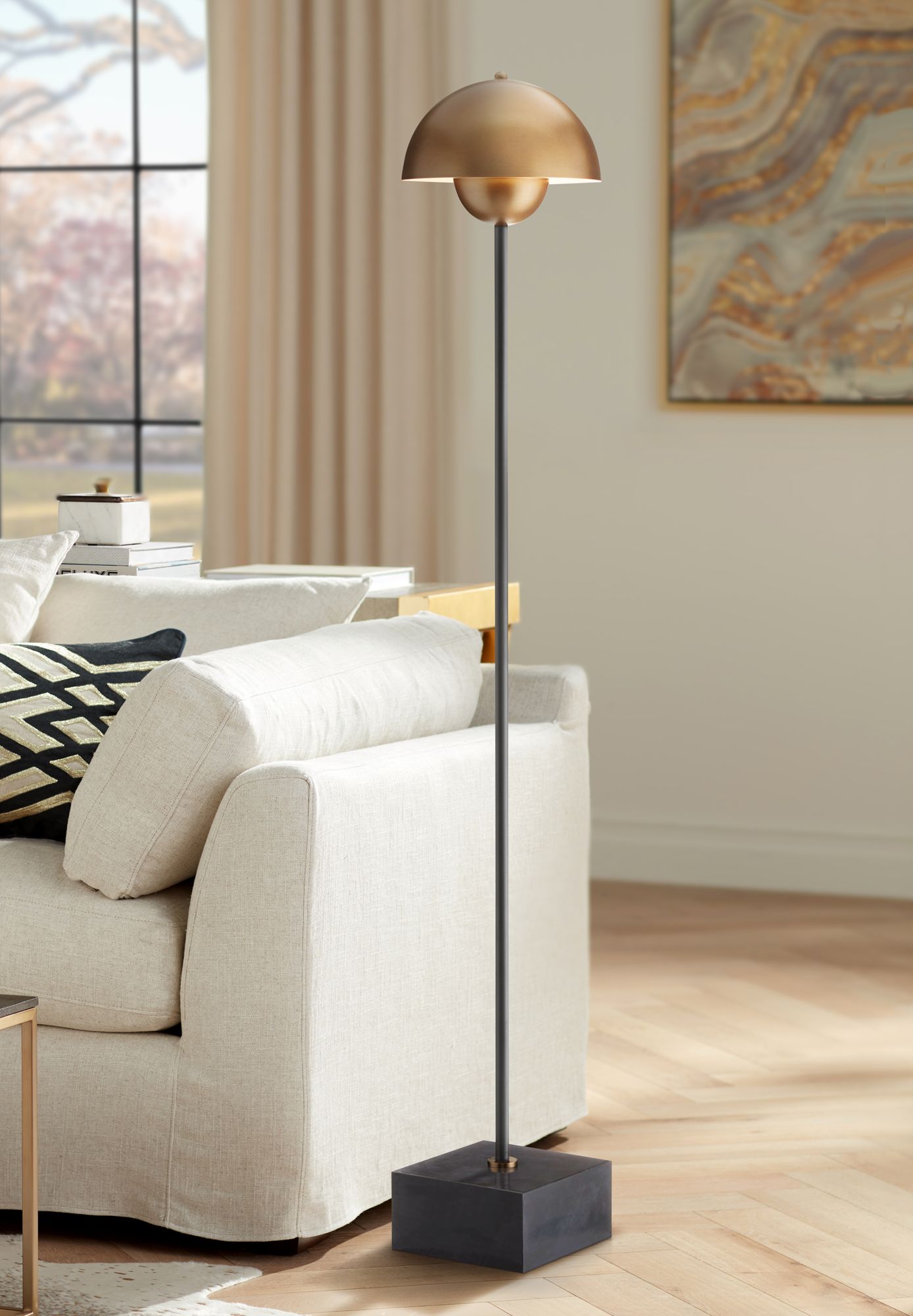 Currey & Company La Rue 58" Brass Mushroom Dome Floor Lamp
