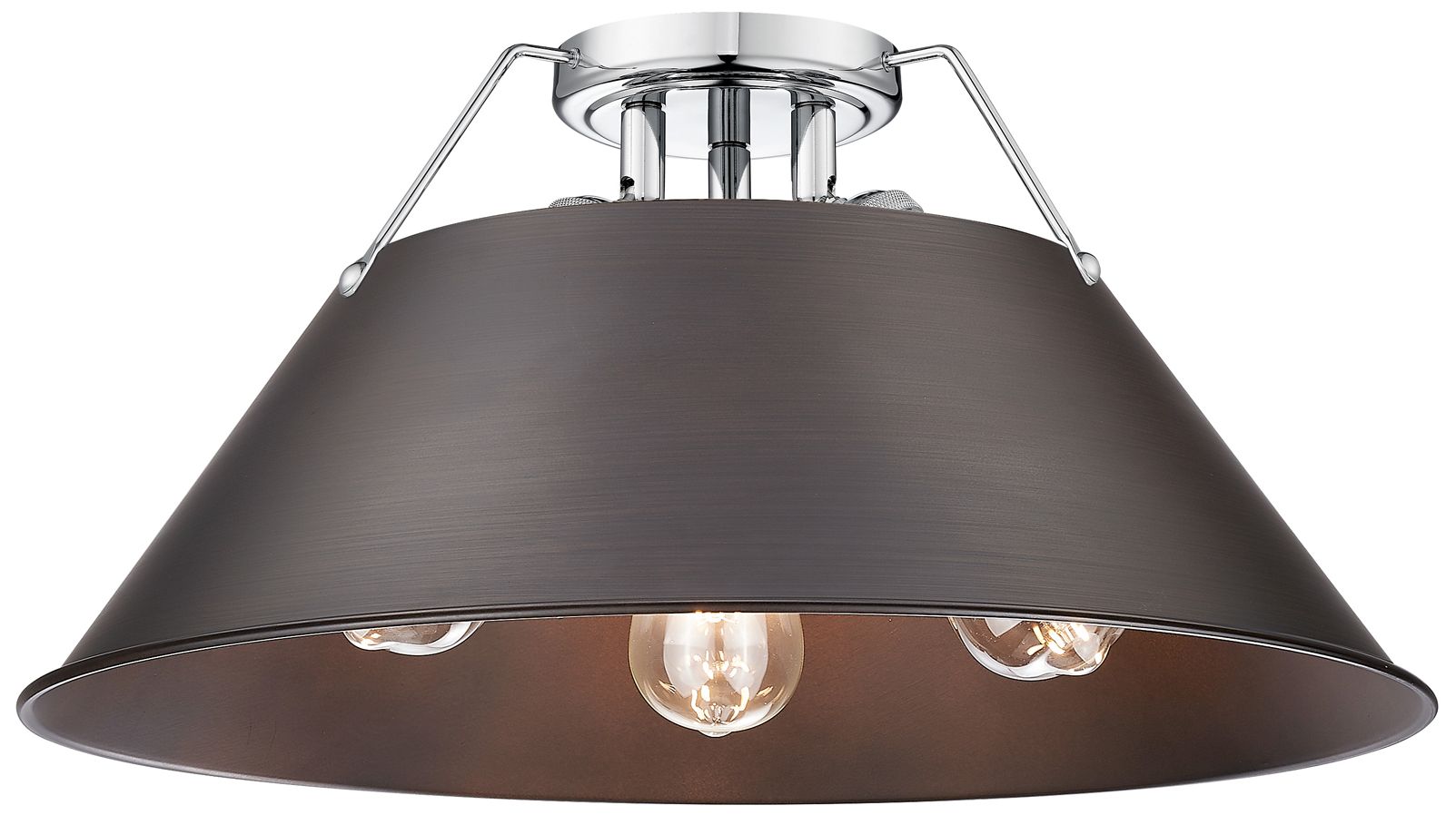 Orwell 18 3/4" Wide 3-Light Flush Mount in Chrome with Rubbed Bronze
