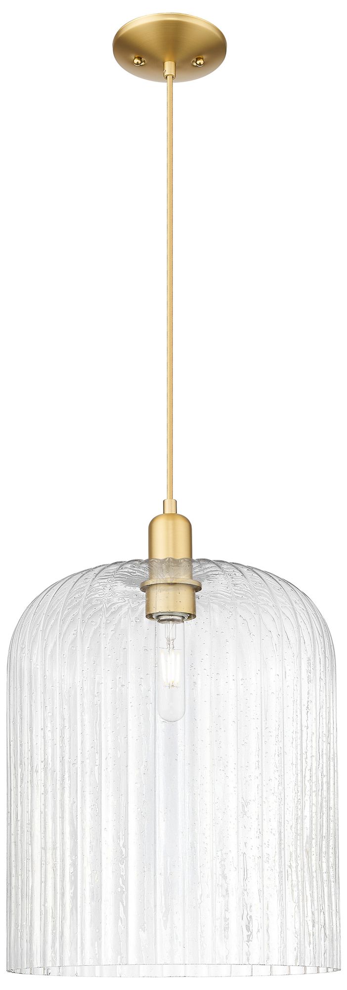 Bridal Veil 12" Wide Satin Gold Cord Hung Mini Pendant With Seedy Shade