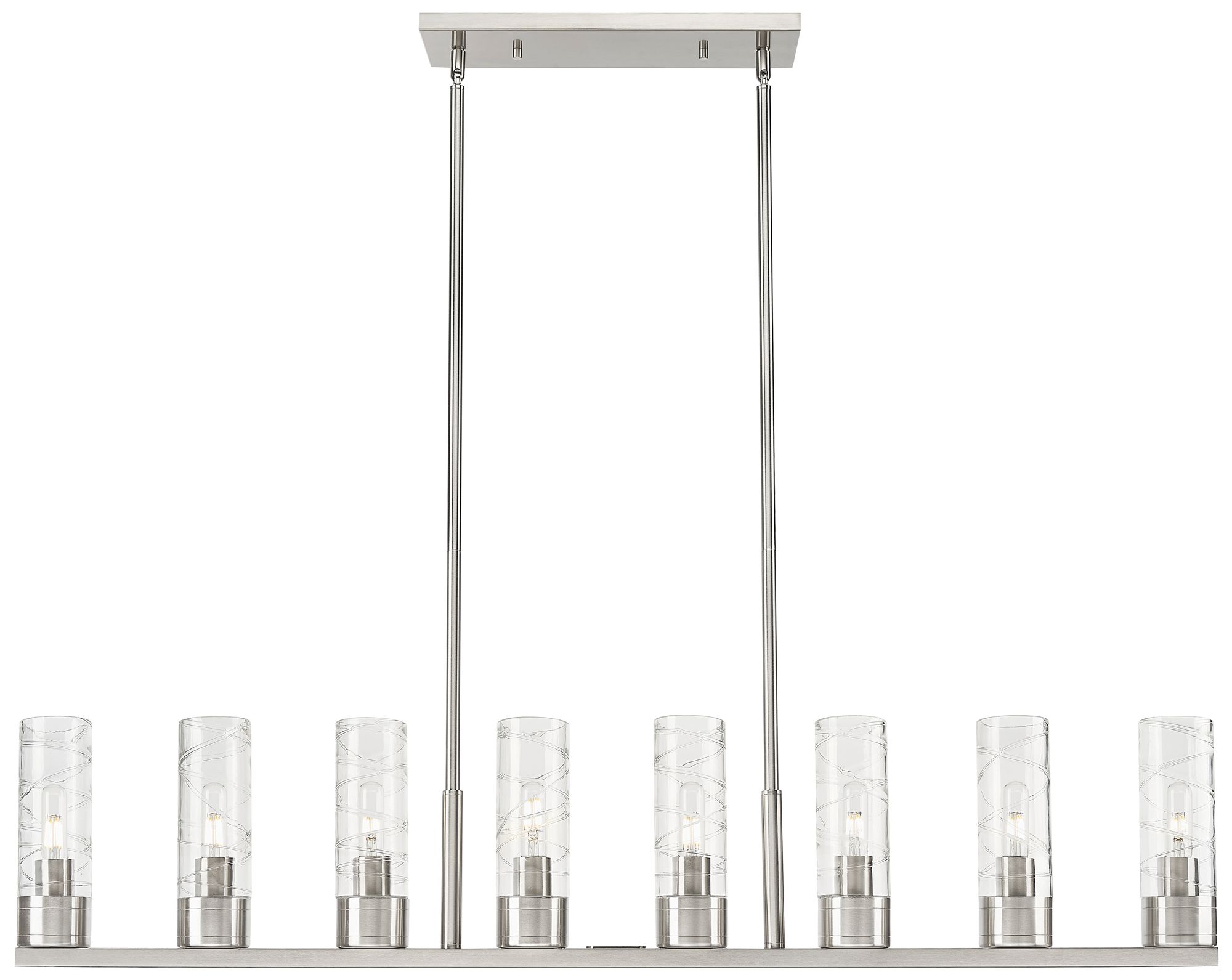 Boreas 48"W 6 Light Satin Nickel Stem Island Light w/ 8" Swirl Shade