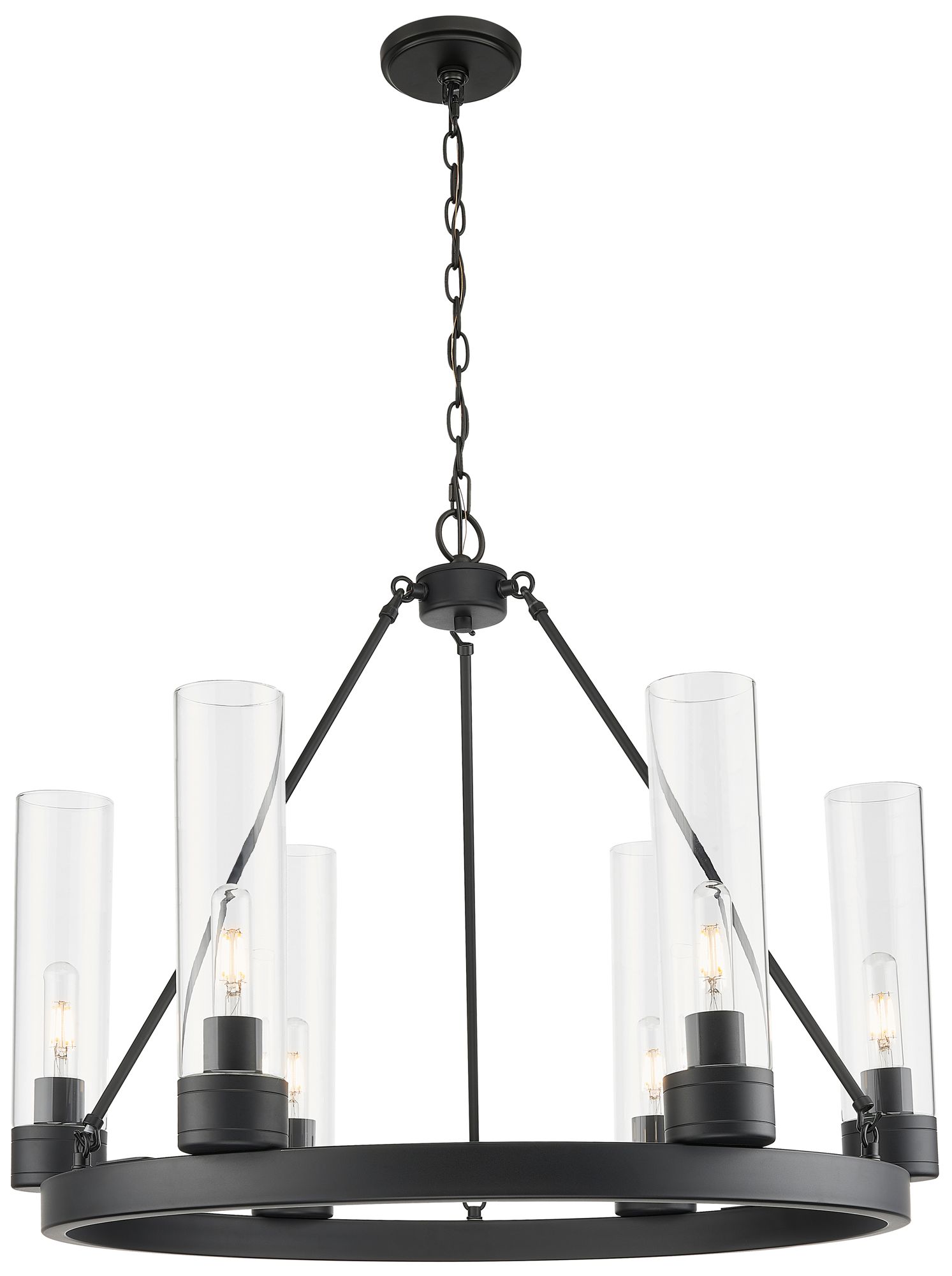 Boreas 29" Wide 6 Light Matte Black Chandelier With 11" Clear Shade