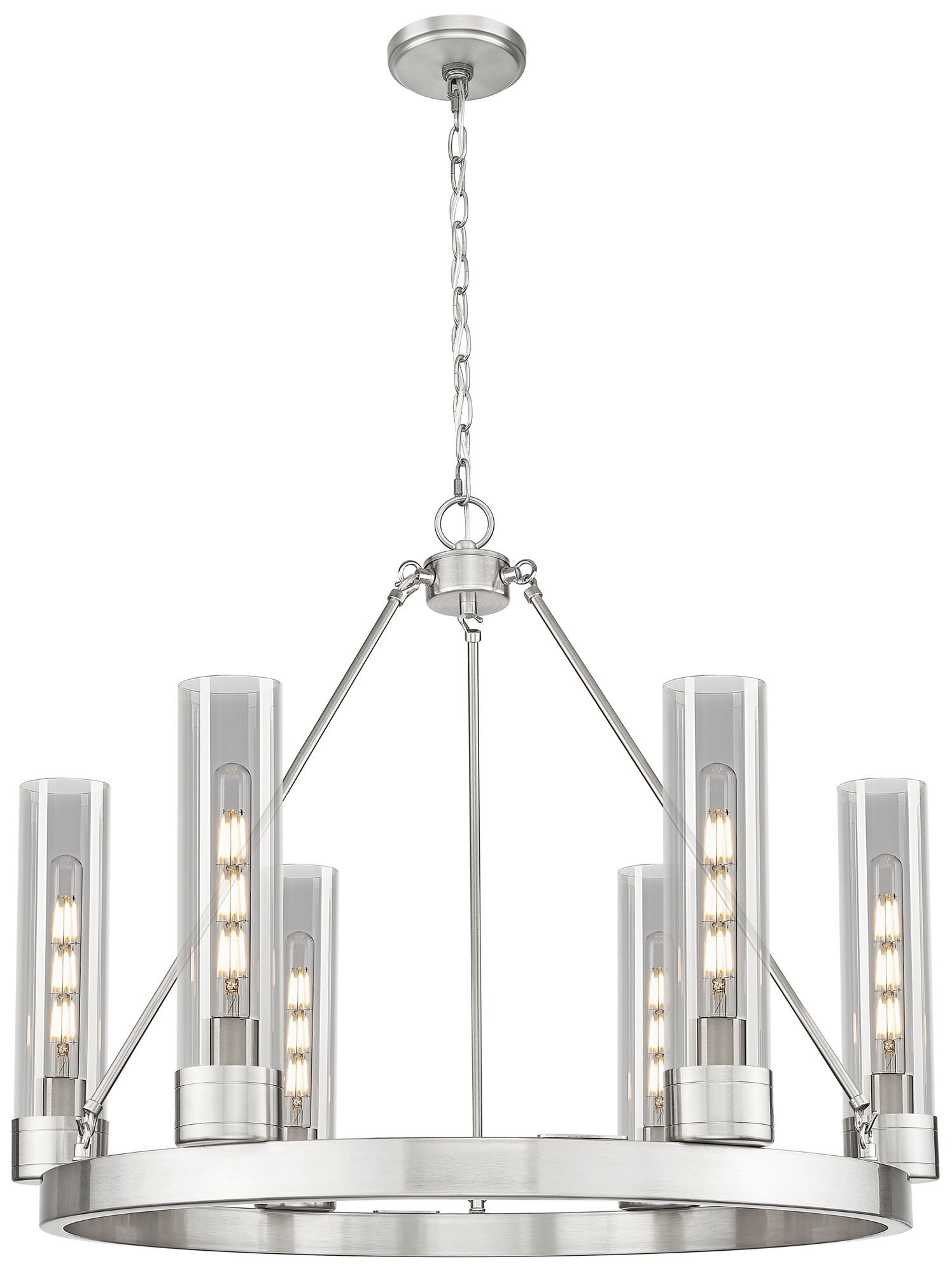 Boreas 29"W 6 Light Satin Nickel Chandelier With 11" Light Smoke Shade