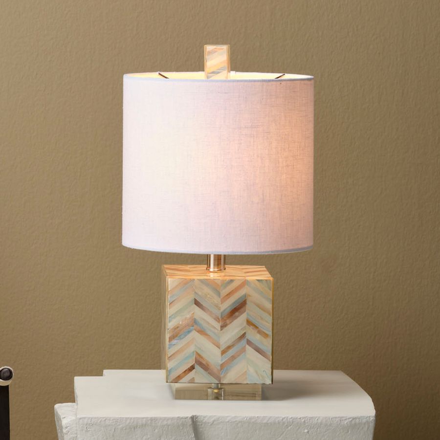 Jamie Young Garbo Mother of Pearl Table Lamp with Linen Shade, Blue