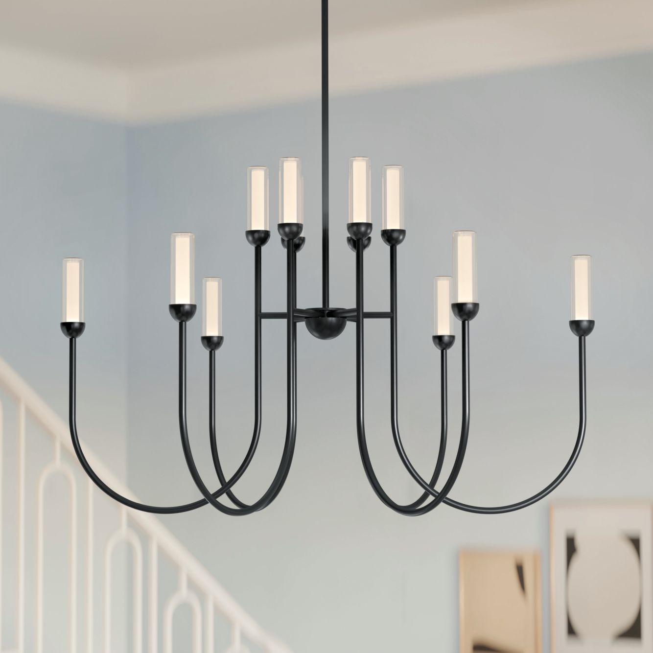 Kichler Moraine 40 Inch LED 12 Light 2-Tier Chandelier in Black