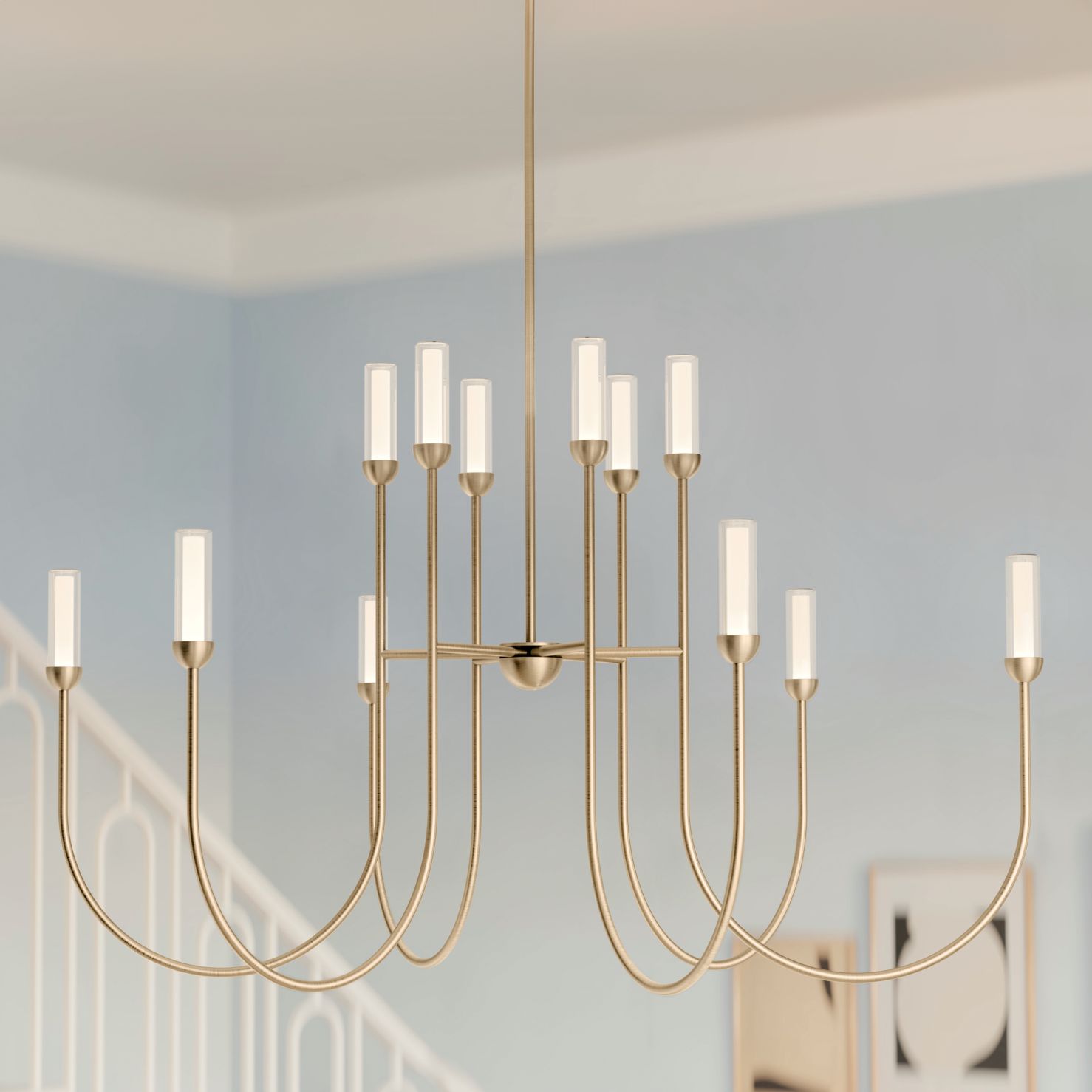 Kichler Moraine 50 Inch LED 12 Light 2-Tier Chandelier in Champagne Bronze