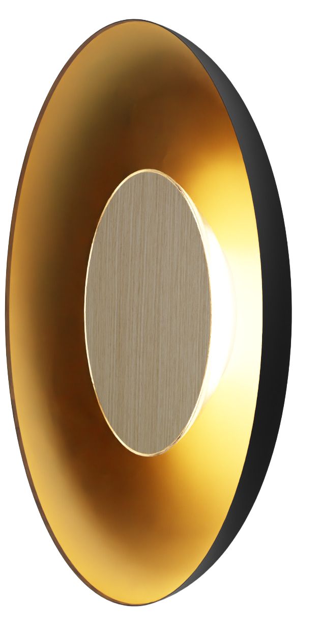 Koncept Ramen Wall Sconce 12" (Wh Oak) w/ 24" back dish (Black w/ Gold Int)