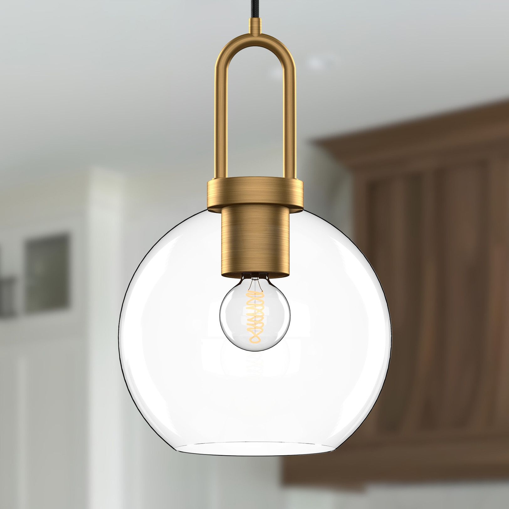 Alora Mood Soji E26 8-in Aged Gold/Clear Glass Pendant