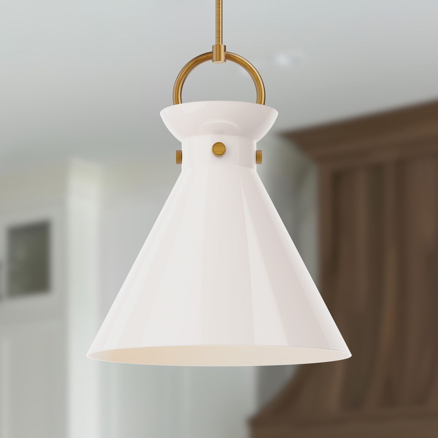 Alora Mood Emerson E26 18-in Aged Gold/Glossy Opal Glass Pendant