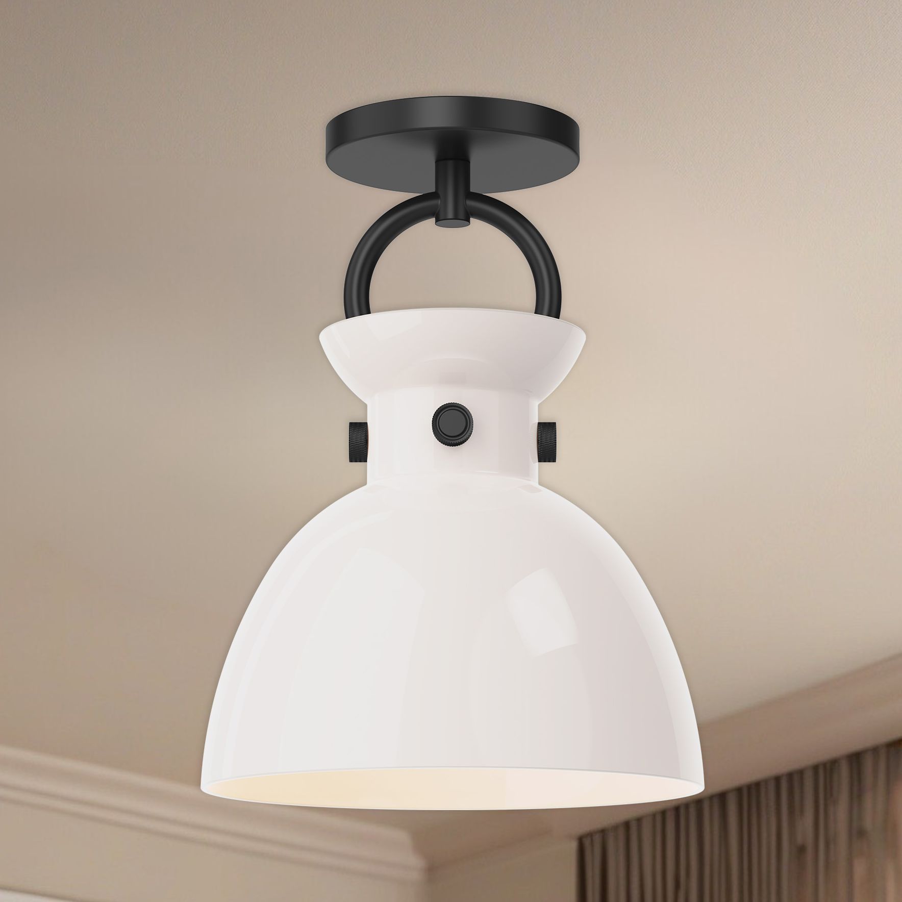 Alora Mood Waldo E26 9-in Matte Black/Glossy Opal Glass Semi-Flush Mount