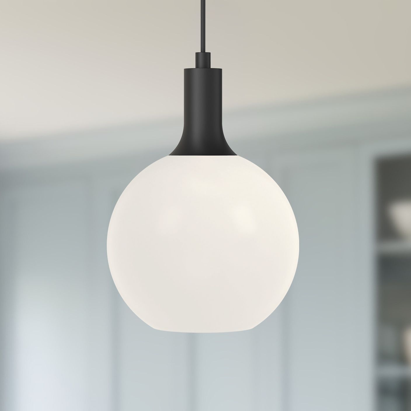 Alora Mood Castilla E26 8-in Matte Black/Opal Matte Glass Pendant