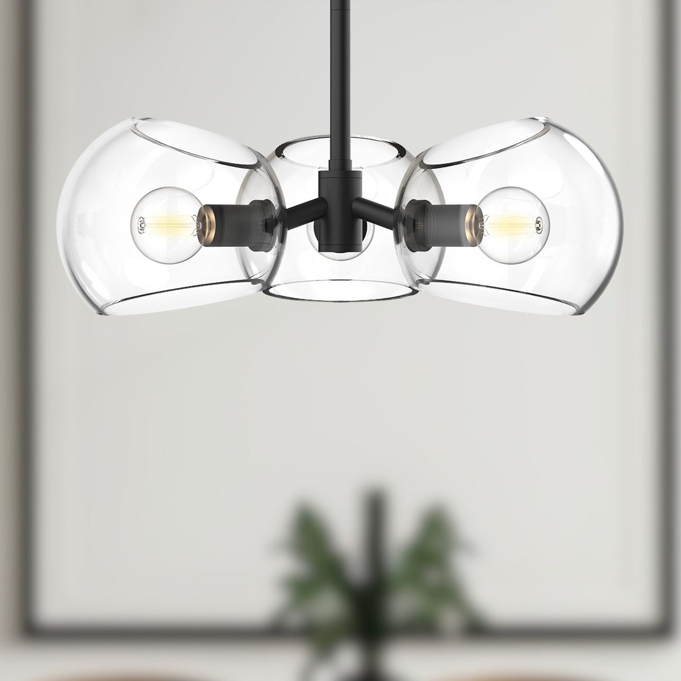 Alora Mood Jude E26 12-in Clear Glass/Matte Black Semi-Flush Mount