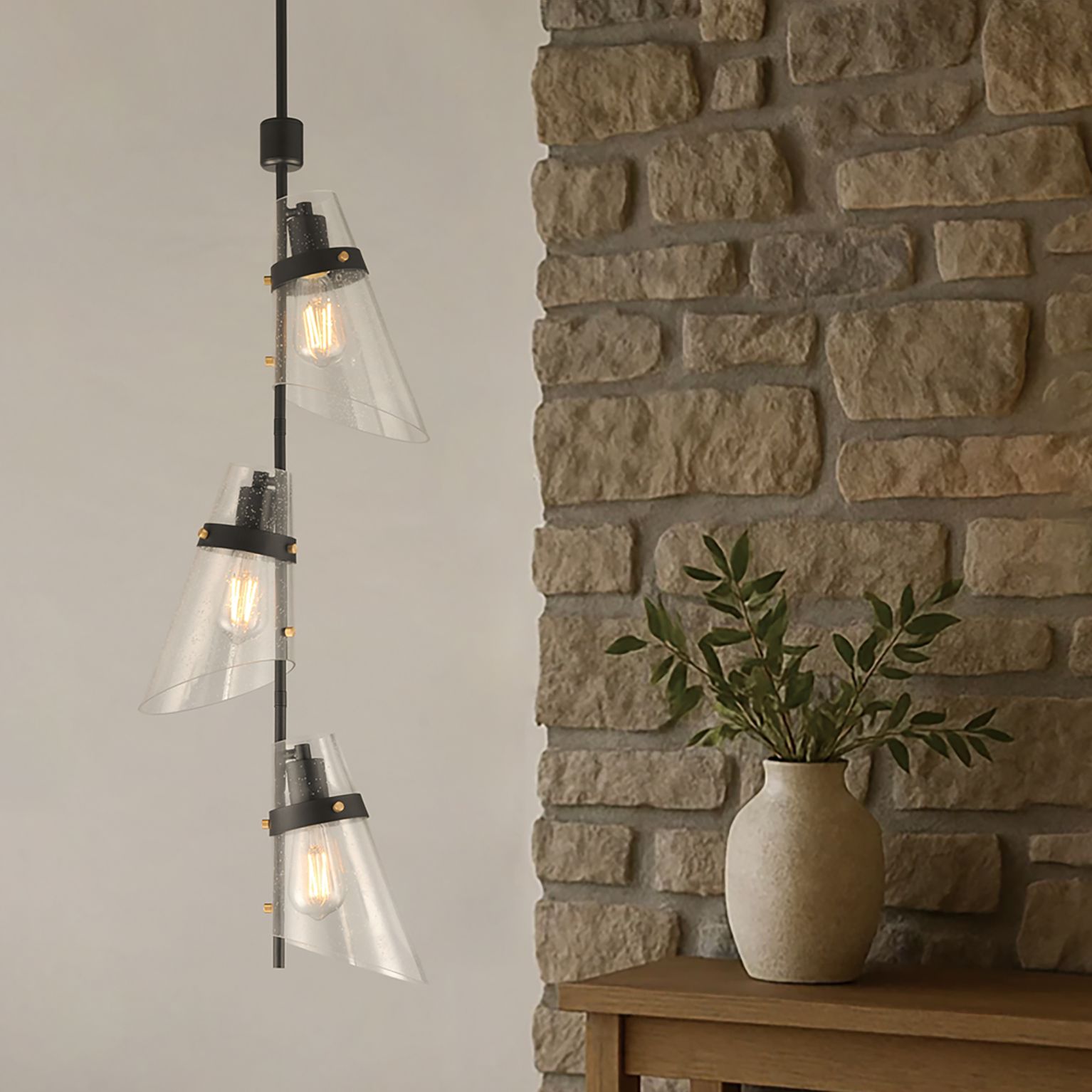 Maxim Finch 12" Wide Dark Bronze/Antique Brass 3-Light Vertical Pendant