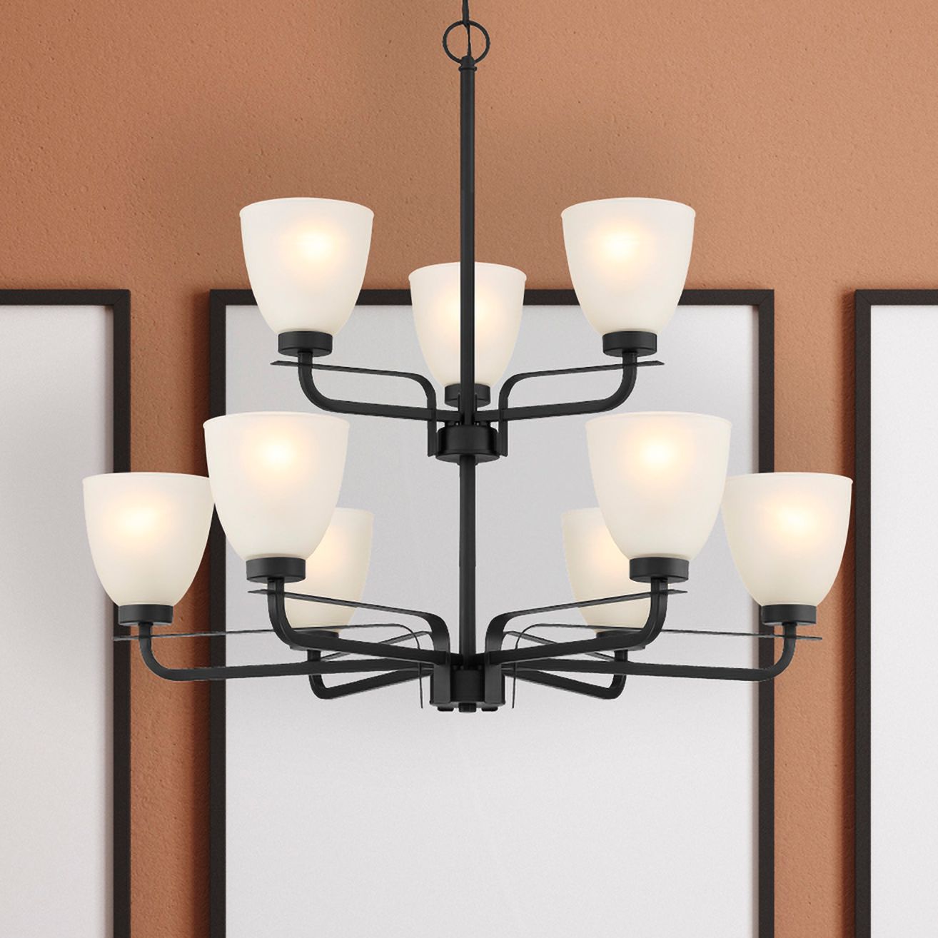 Minka-Lavery Kaitlen 9-Light Coal Black Chandelier with White Glass Shades