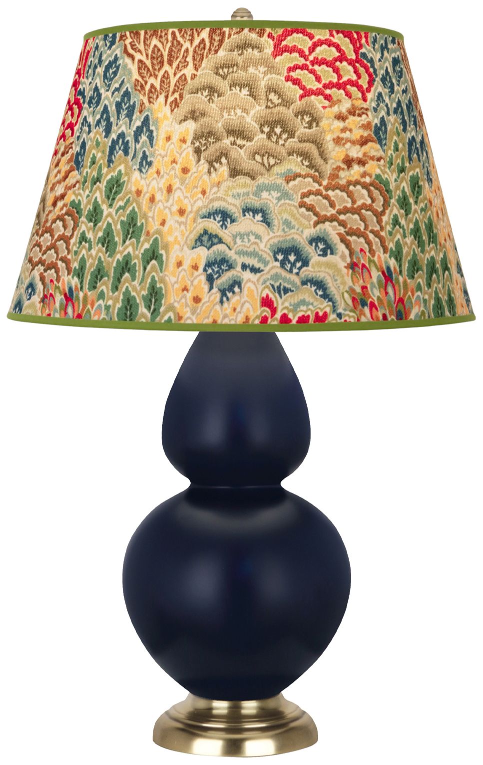 Double Gourd 31"H Matte Blue And Brass Table Lamp w/ Fall Floral Shade