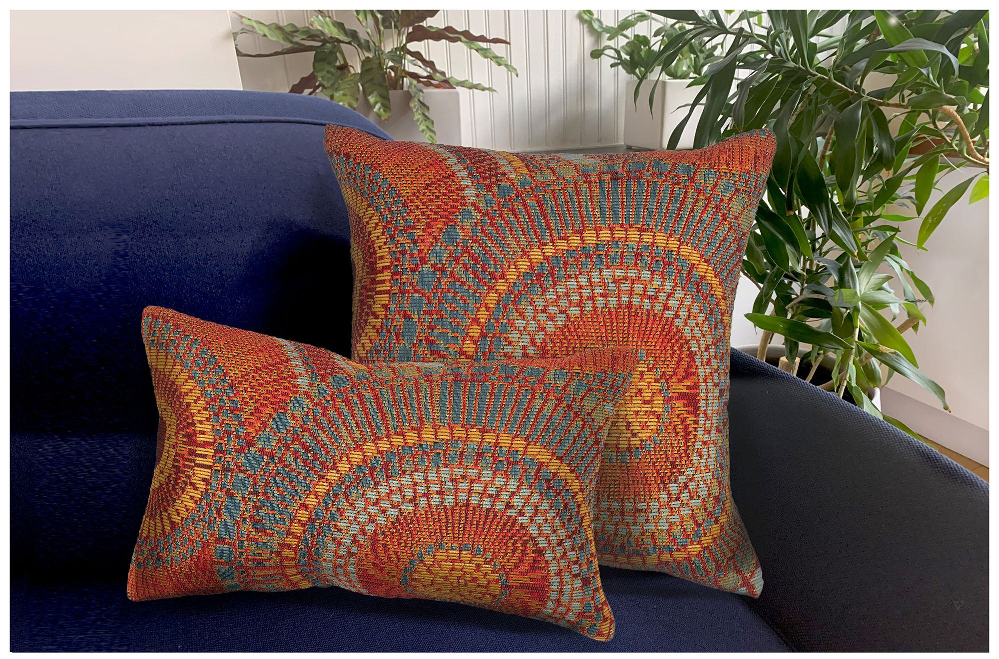 Marina Blue and Orange Coral 18" x 12" Indoor-Outdoor Pillow