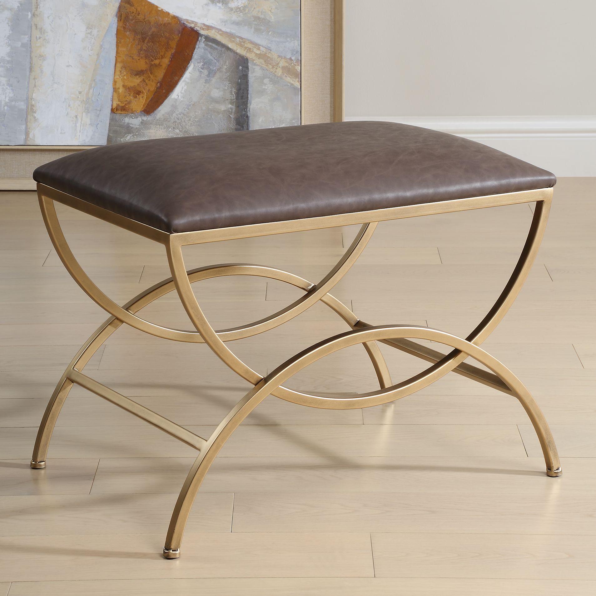 19 1/2" High Brass Metal with Cocoa Brown Upholstered Seat Bench