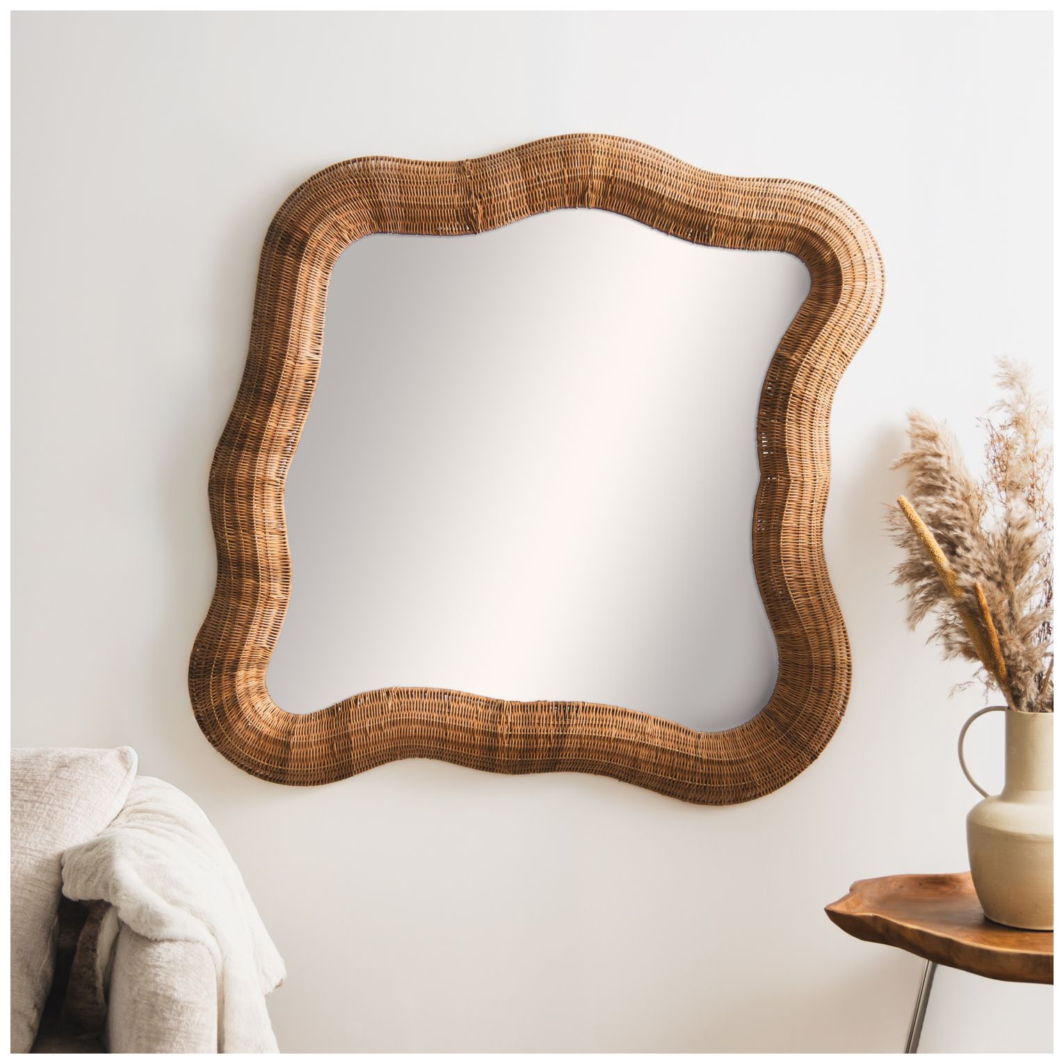 Beige Seagrass Modern Farmhouse Wall Mirror, 42" x 2" x 41"