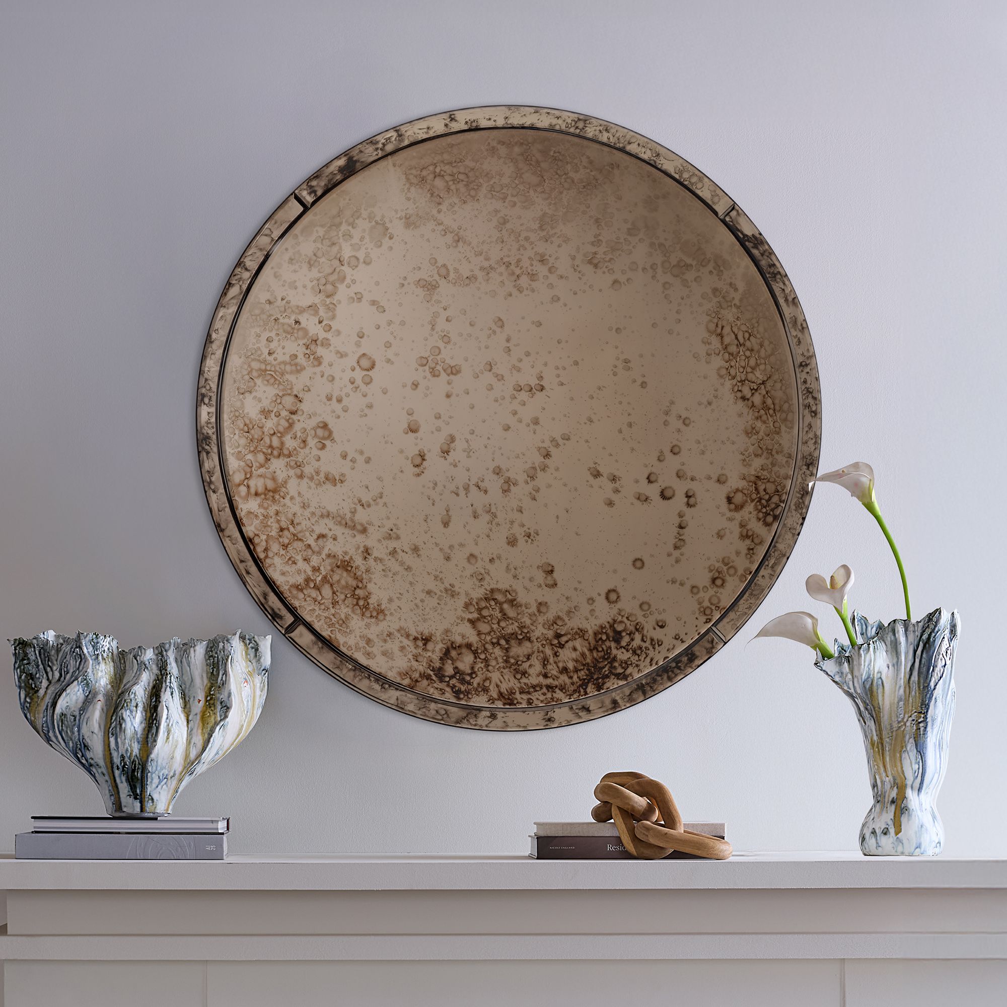 Jamie Young Chambord Antiqued Glass Round Wall Mirror 32" in Antique Brass