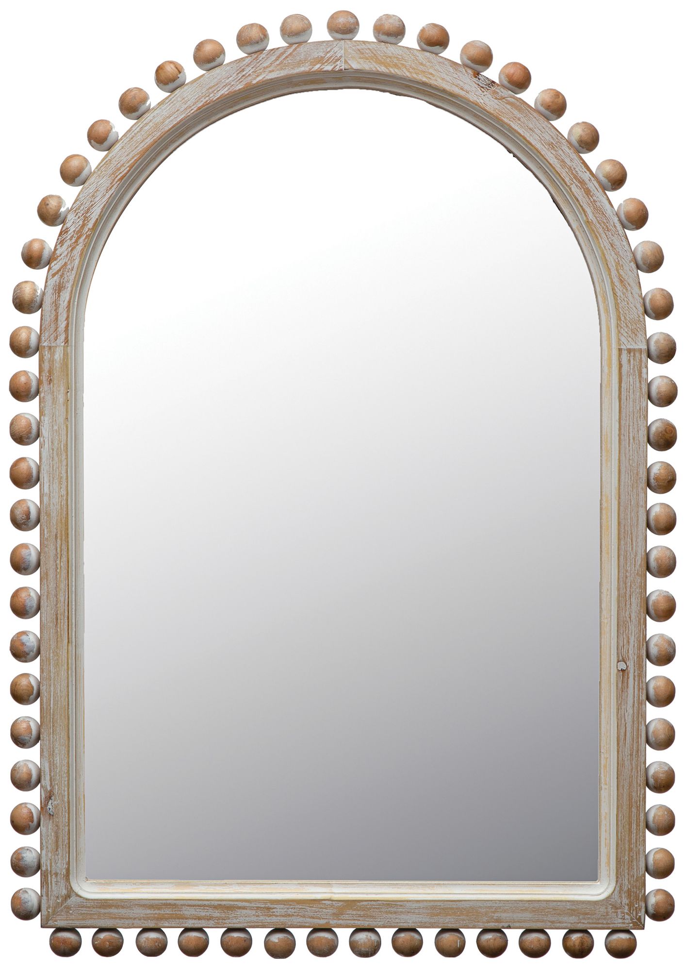 Wood Ball Framed Arched Wall Mirror, Natural