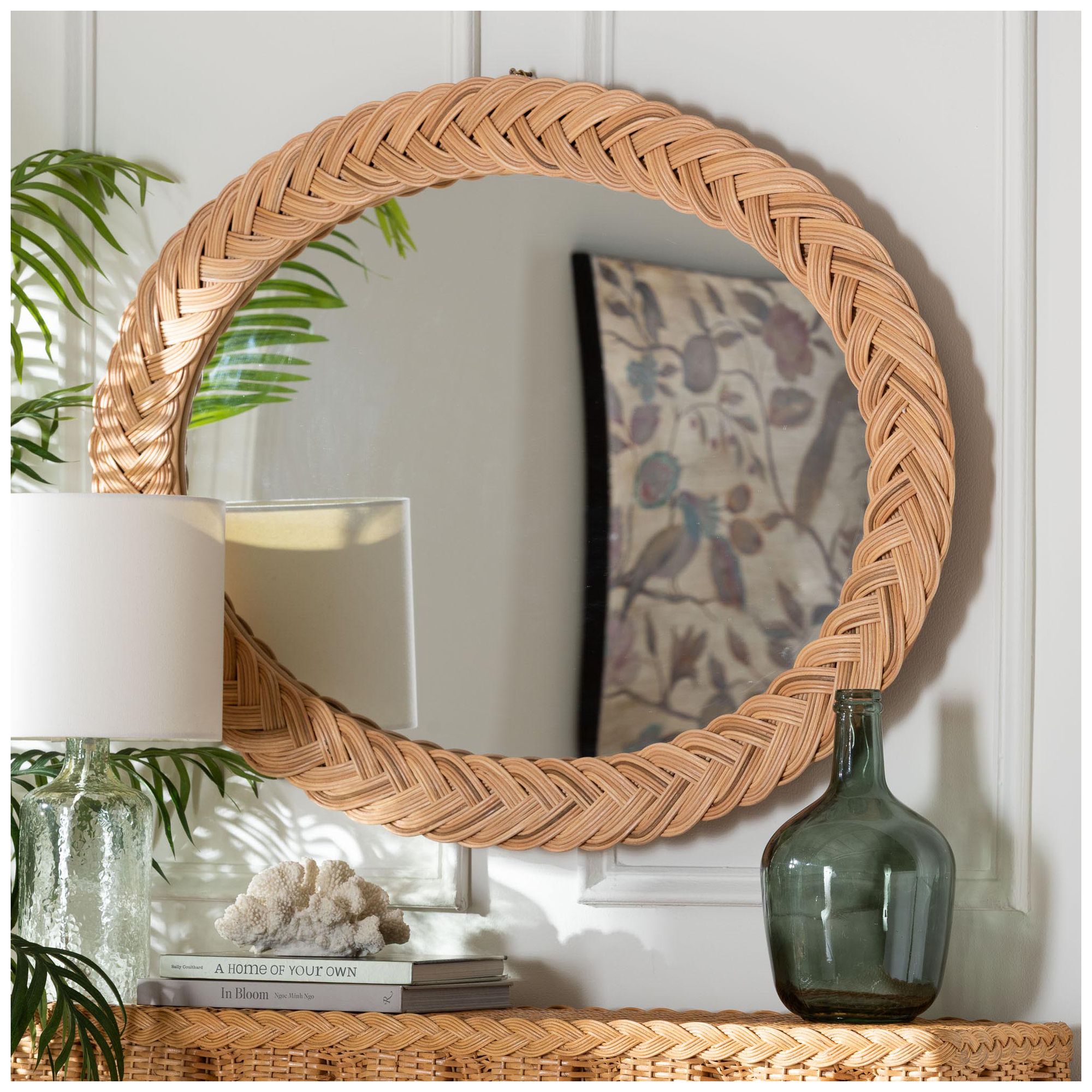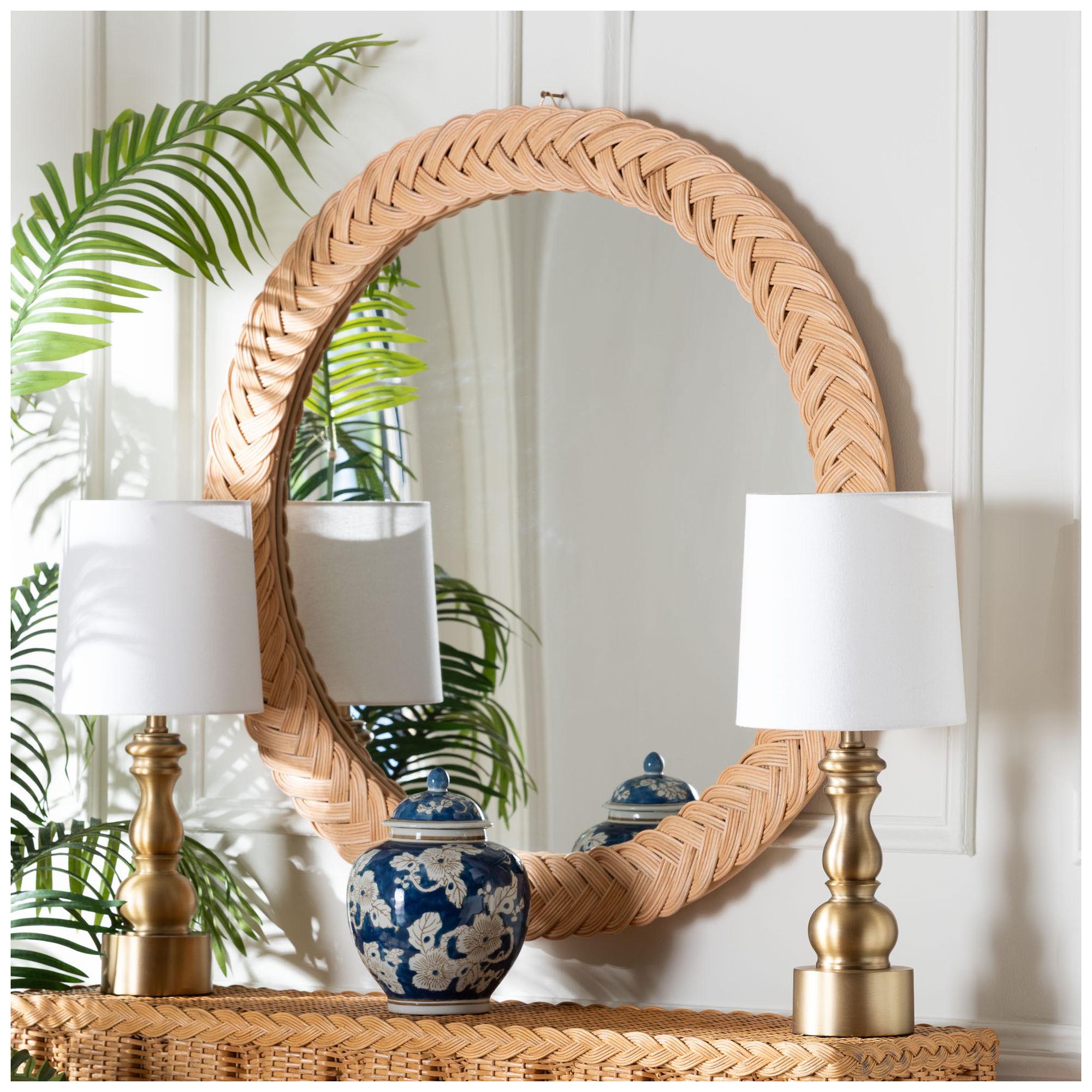 bali & pari Nara Natural Rattan Wall Mirror, Round