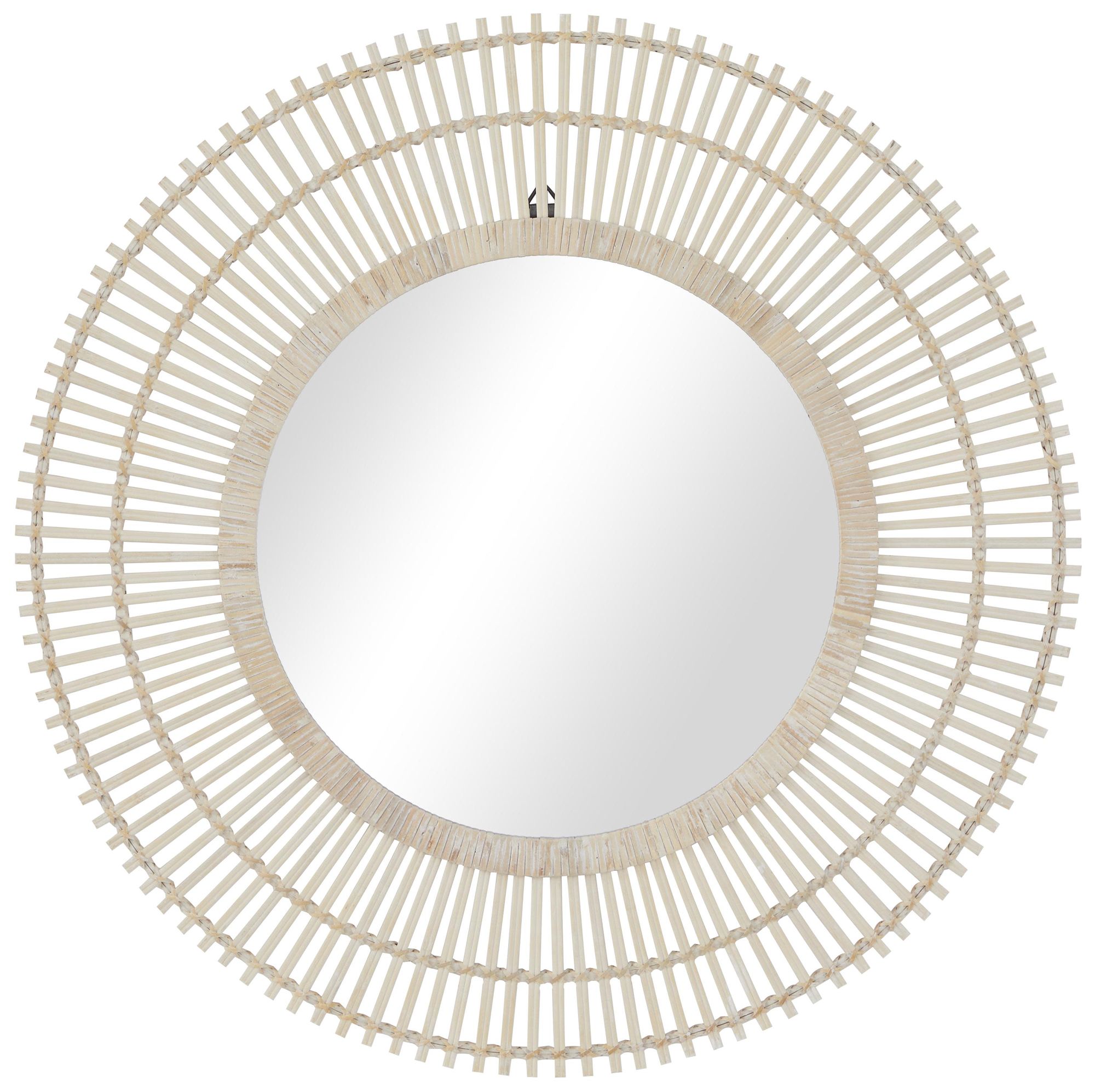 Cream Bamboo Wood Bohemian Wall Mirror, 36" x 1" x 36"