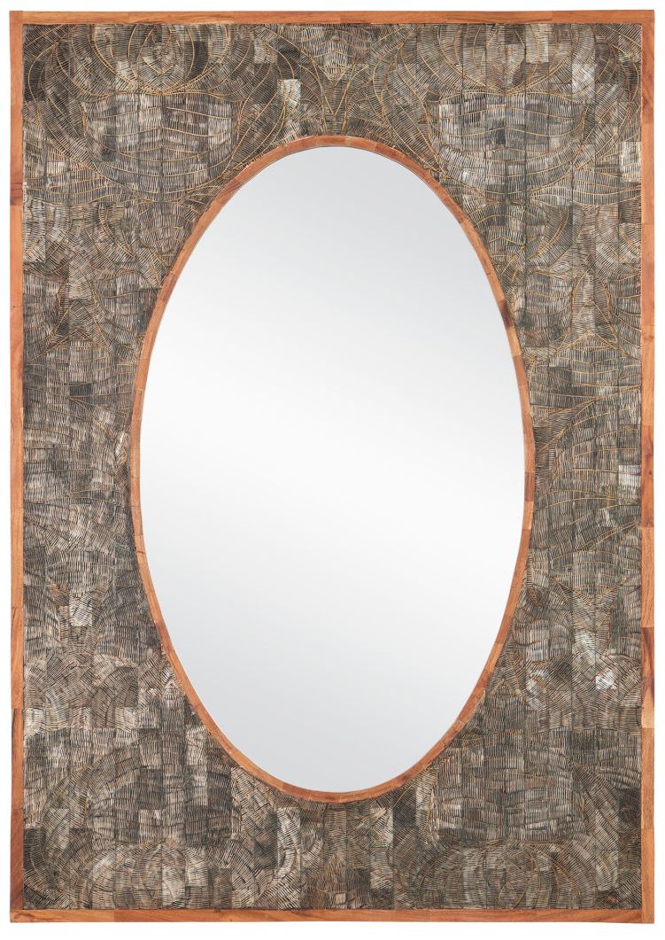 Currey & Company 31" Merriam Oval Buffalo-Bone Mirror