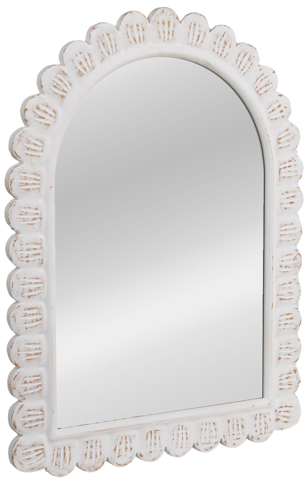 Arched Raised Scallop Pattern Wood Wall Mirror, White