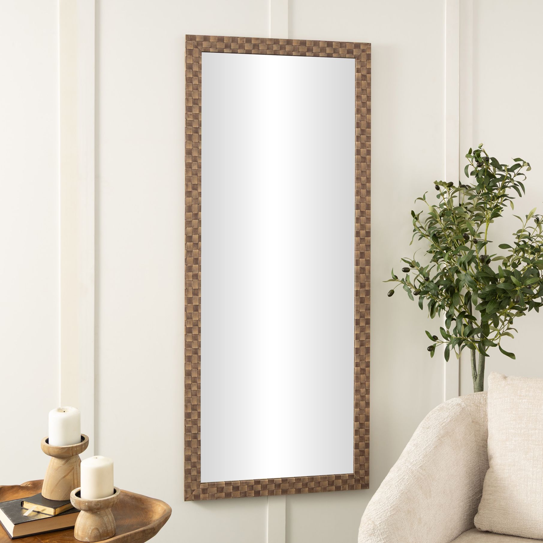 Brown Wooden Transitional Wall Mirror, 25" x 1" x 58
