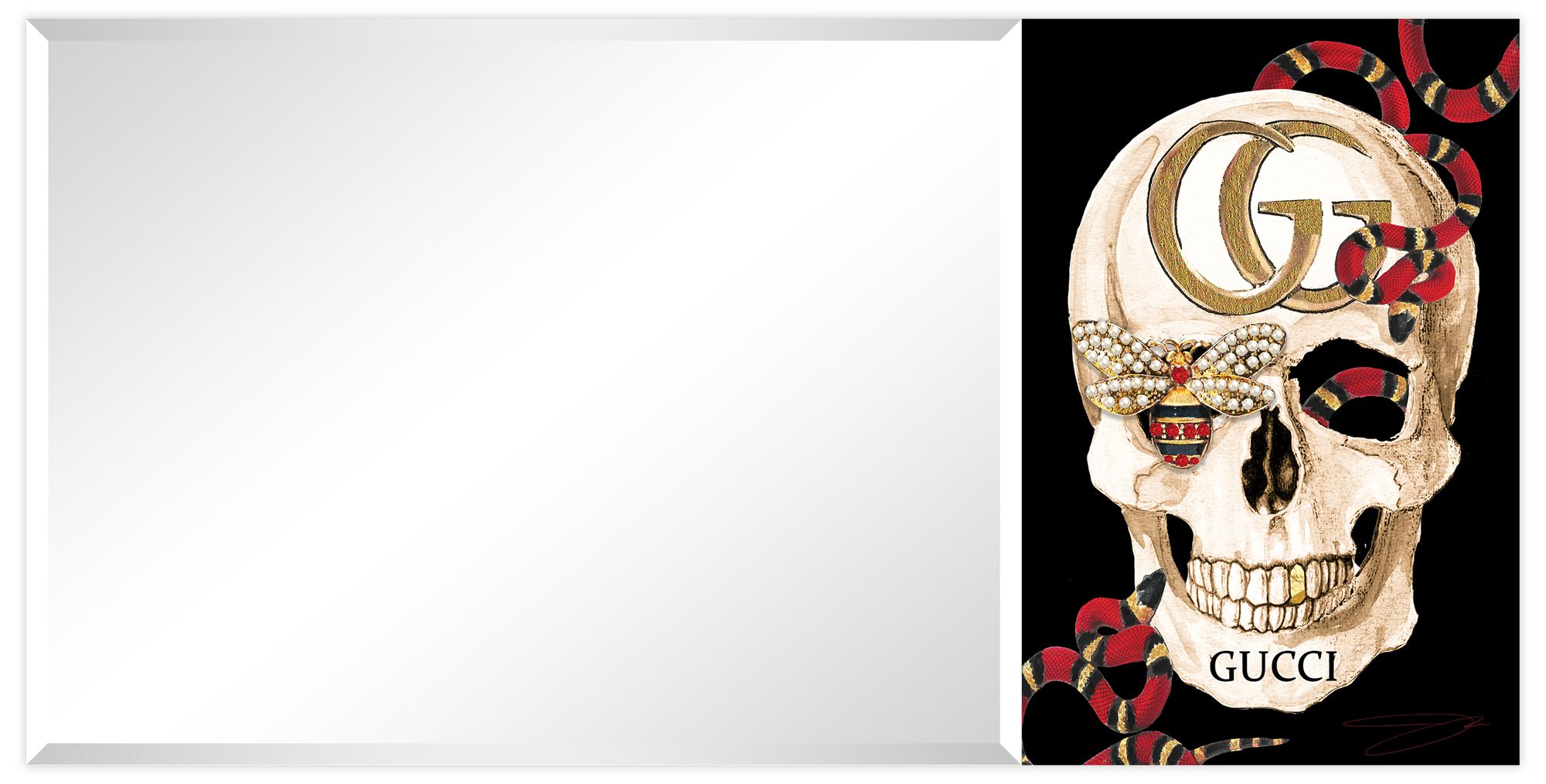 New GG Skull Rectangular Beveled Mirror on Printed Tempered Art Glass