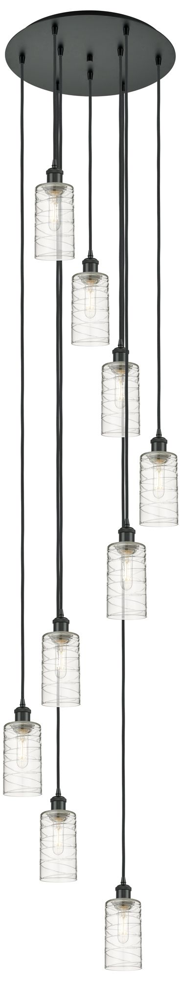 Crown Point 9 Light 19" Cord Hung Multi Pendant Black w/ Deco Swirl Shade