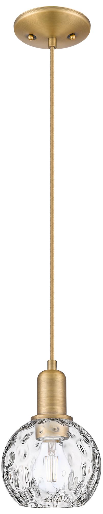 Arcadia Athens 6"W Brushed Brass Cord Pendant w/ Water Glass Shade