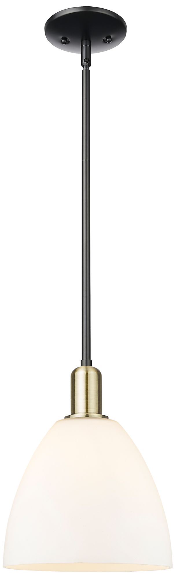 Arcadia Bristol 9"W Black Brass Stem Mini Pendant w/ Matte White Shade