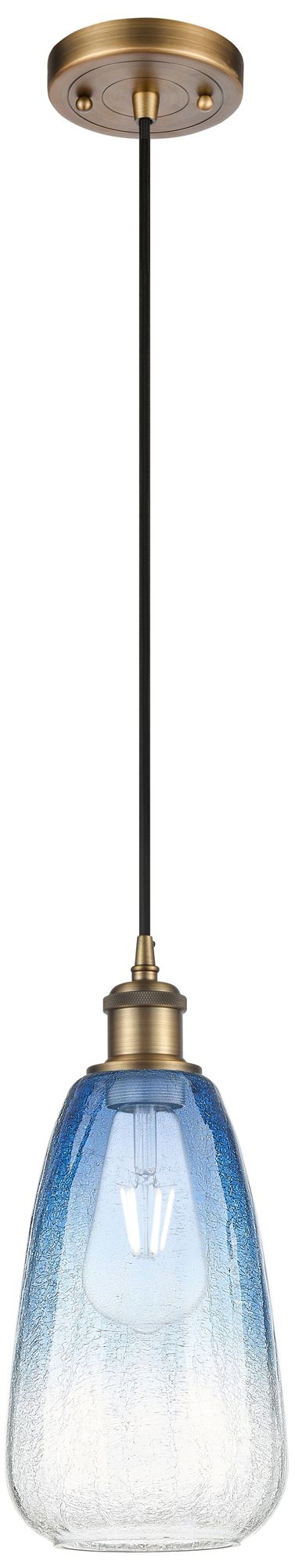 Edison Brookhaven Almond 6"W Black Cord Mini Pendant w/ Sapphire Shade