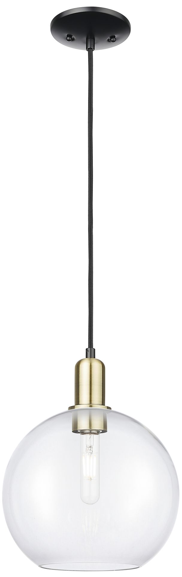 Arcadia Athens 10"W Black Brass Cord Hung Mini Pendant w/ Clear Shade