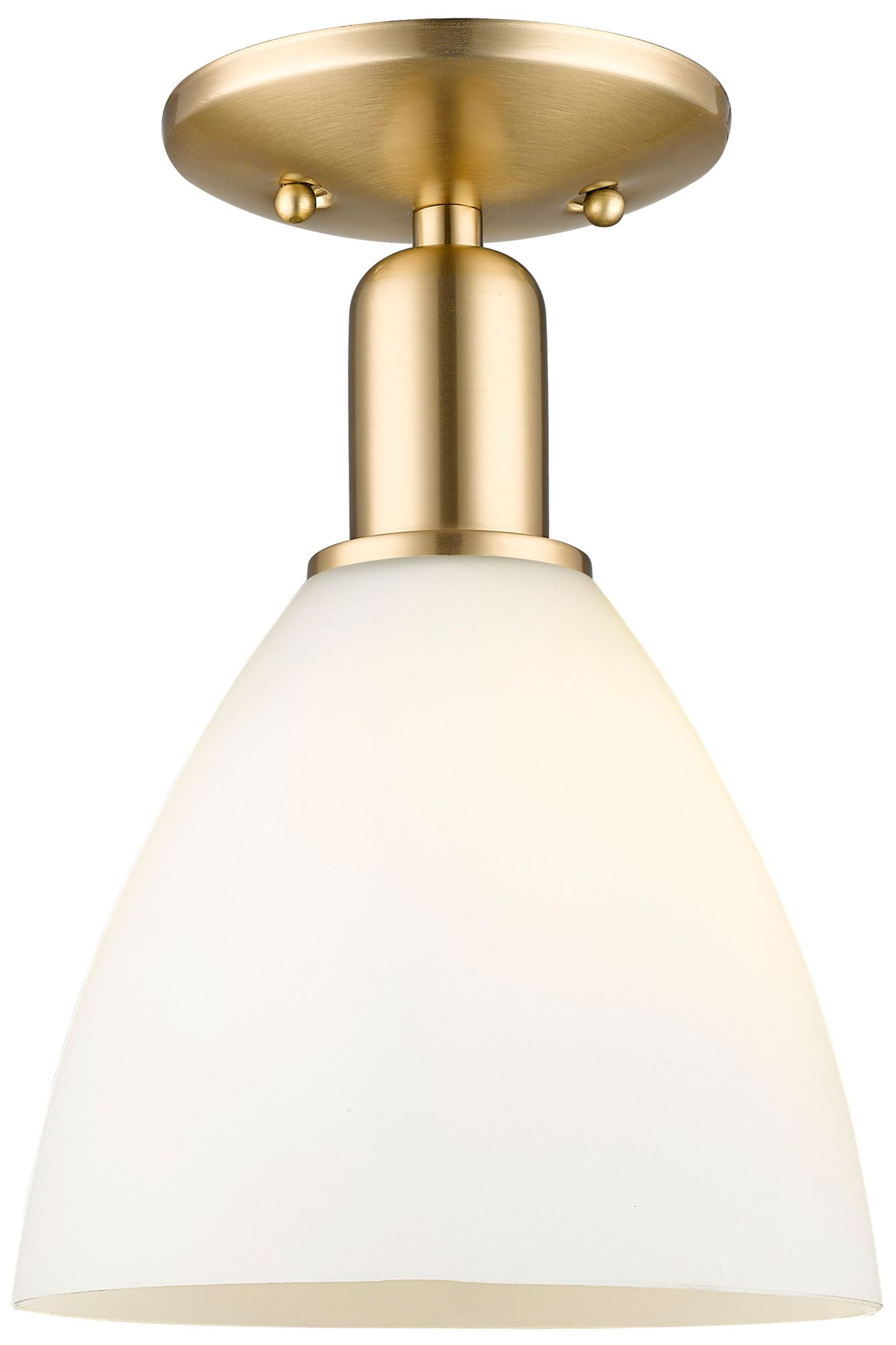 Arcadia Bristol 8"W Bronze Semi.Flush Mount w/ Matte White Shade