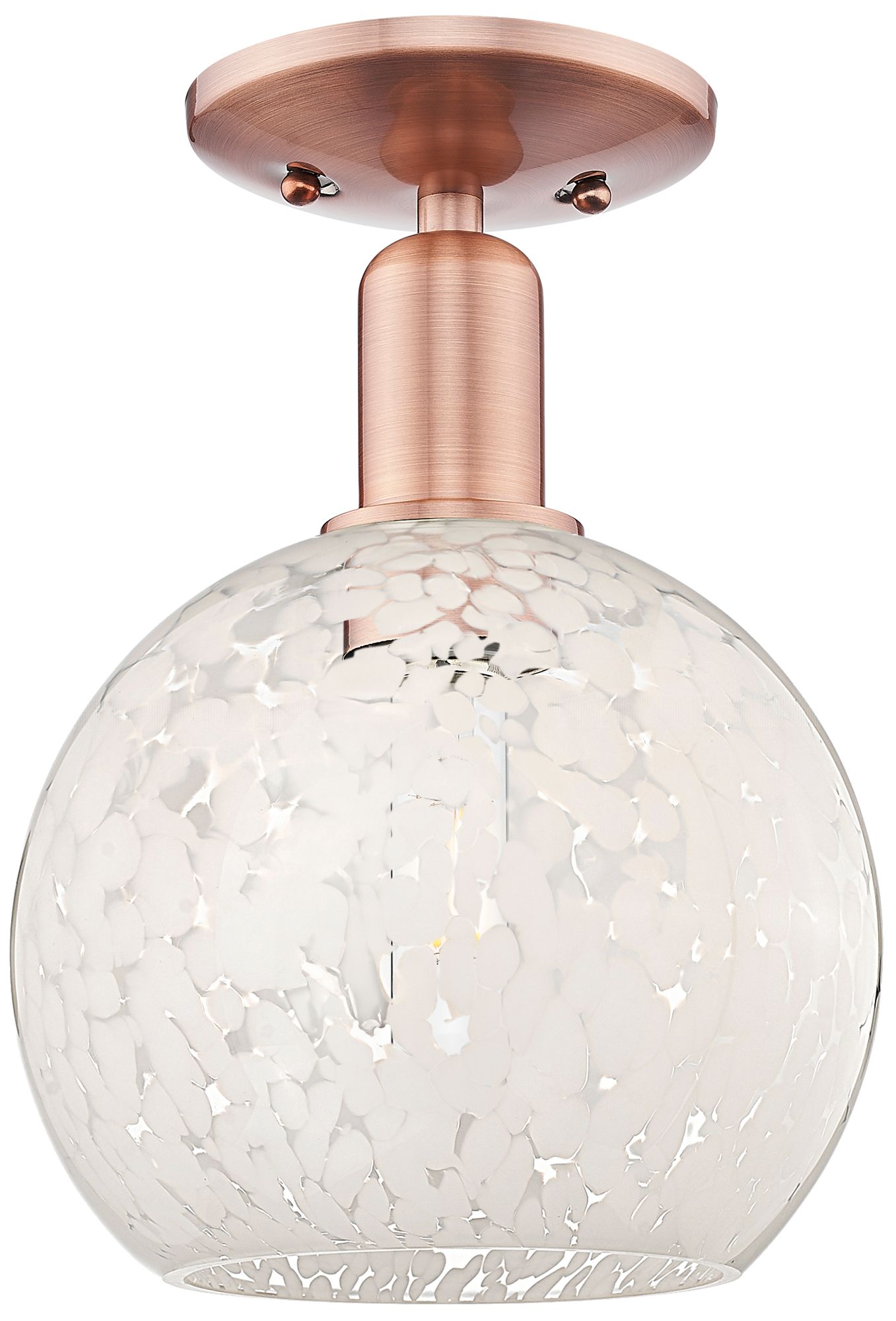Arcadia White Mouchette 8" Wide Antique Copper Semi.Flush Mount With