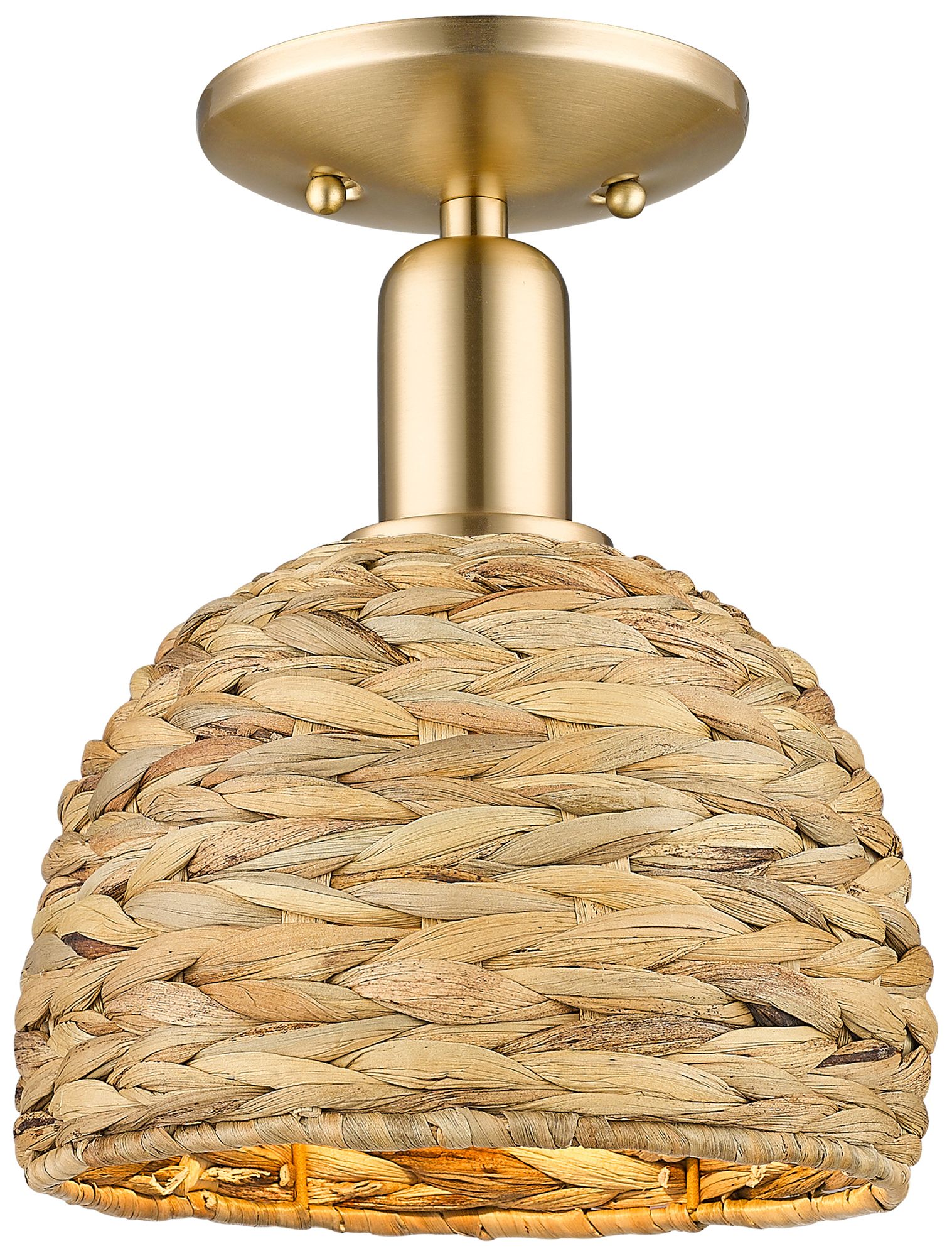 Arcadia Woven Rattan 8" Wide Champagne Bronze Semi.Flush Mount With
