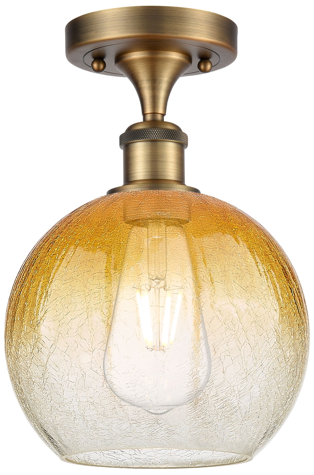 Ballston Brookhaven Globe 8"W Brushed Brass Semi-Flush w/ Amber Shade