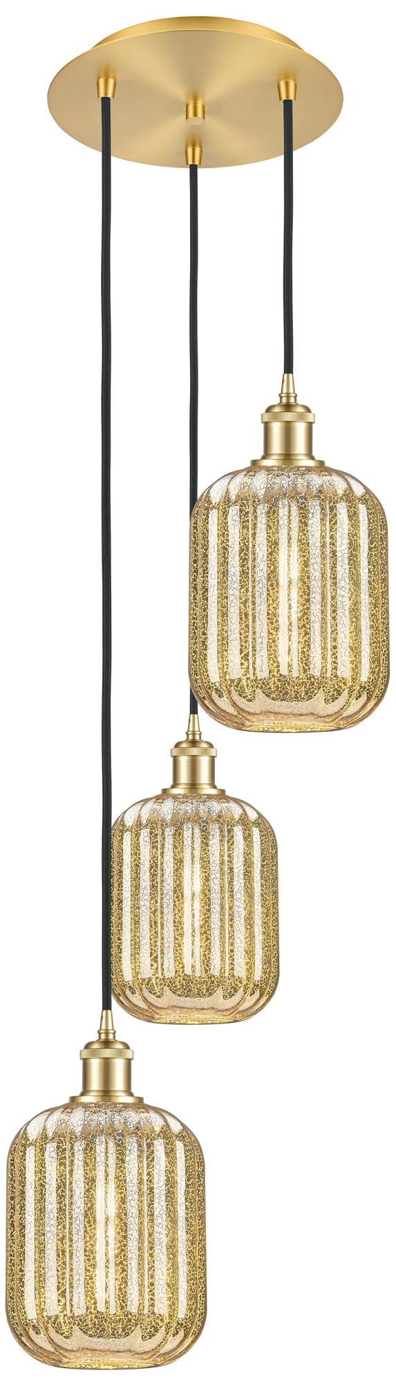 Ballston Preston 13"W 3 Light Gold Cord Pendant w/ Mercury Jar Shade