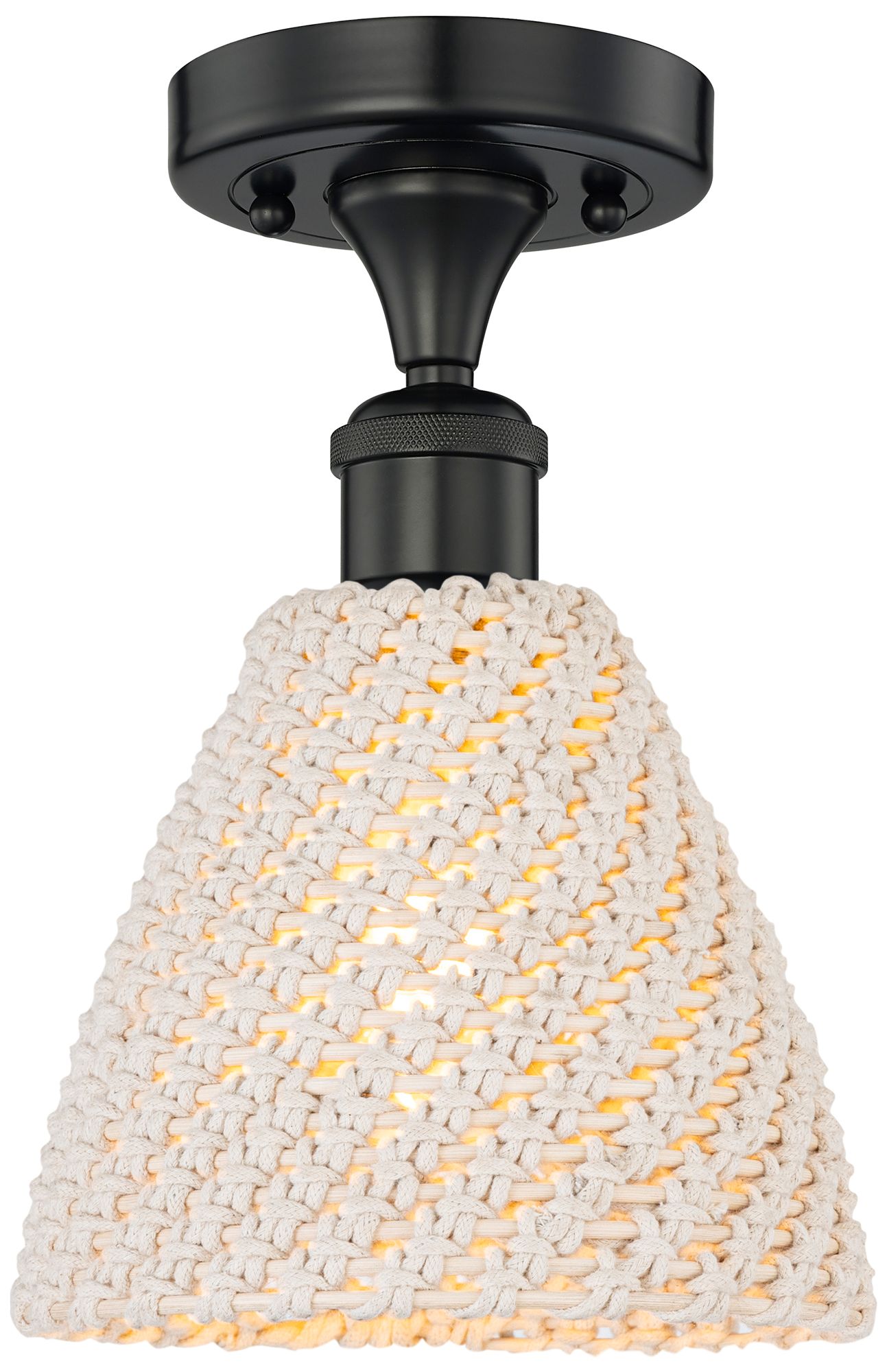 Edison Bristol Natural 8" Wide Matte Black Semi.Flush Mount With