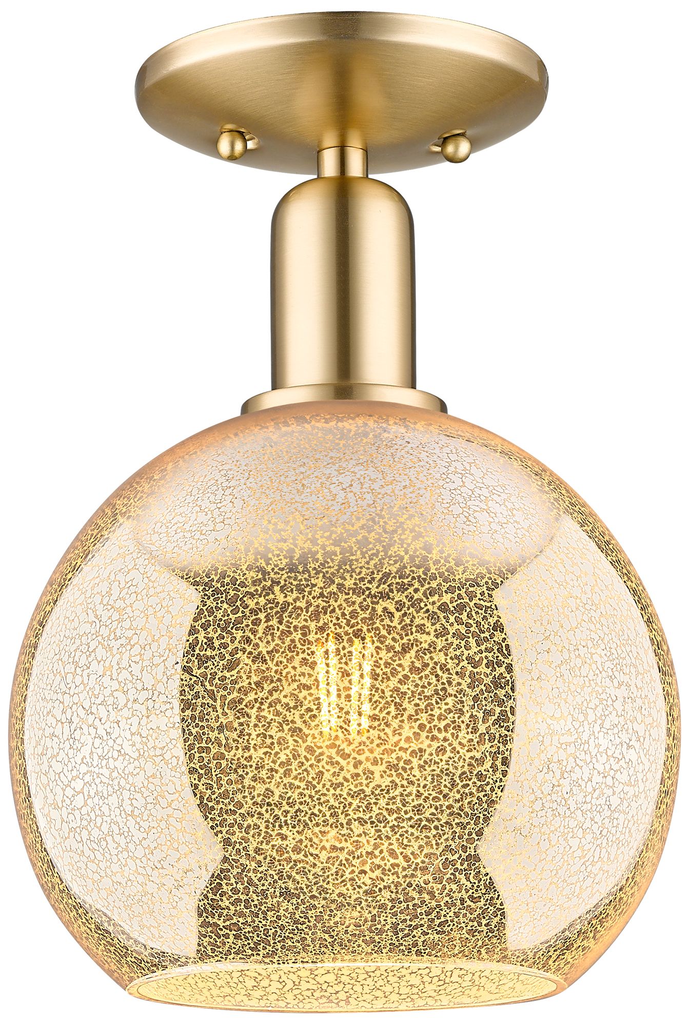 Ballston Chelsea 8"W Black And Brass Semi.Flush Mount w/ Mercury Shade