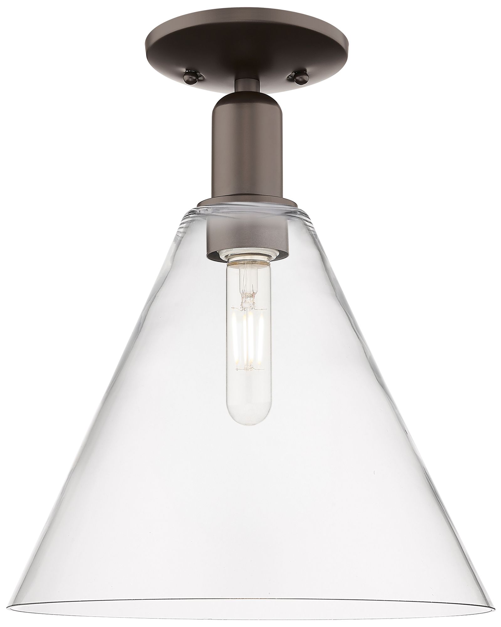 Arcadia Berkshire Glass 16"W Bronze Semi.Flush Mount w/ Seedy Shade