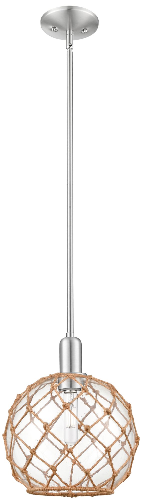 Arcadia Farmhouse 10"W Nickel Stem Pendant w/ Clear Brown Shade