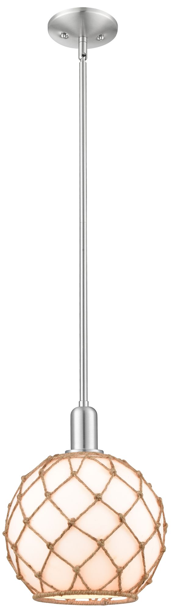 Arcadia Farmhouse 10"W Nickel Stem Pendant w/ White Brown Shade