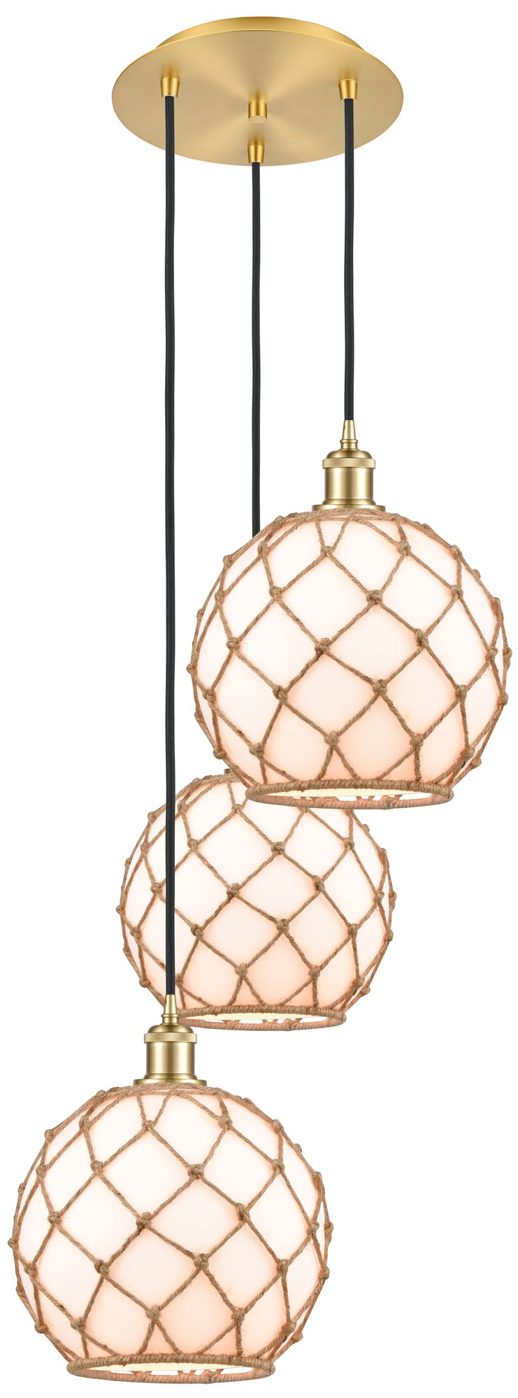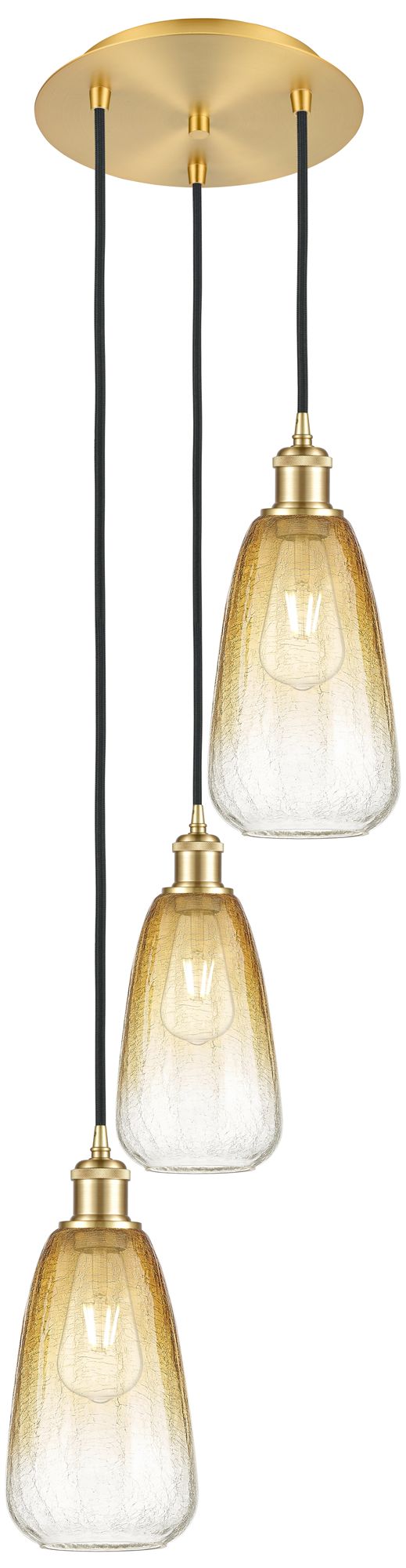 Ballston Brookhaven Almond 13"W 3-Lt Gold Cord Pendant w/ Amber Shade